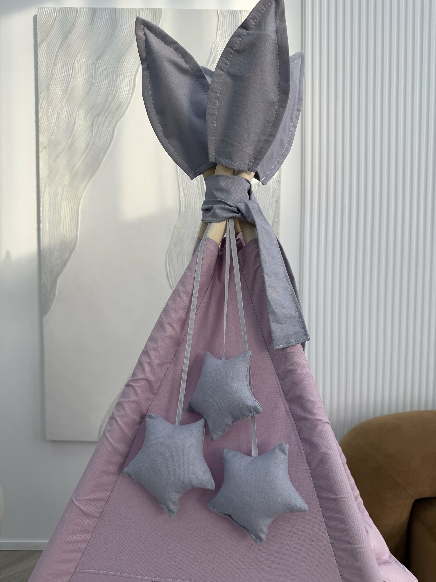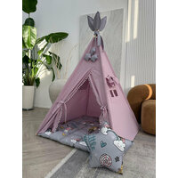 Детский игровой вигвам (домик для детей) - оригинальный подарок для ребёнка, место, где ребенок будет играть и отдыхать. Вигвам просто собрать. Комплект состоит: вигвам (100 % хлопок) с окном и занавеской, флажки-перья на верх вигвама, прочный деревянный каркас из 4-х палок (шлифованная береза, палки сборные 8 штук по 90 см, преобразуются в 4 по 180 см.), веревка, система антискладывания, подушка, коврик фиксируется по углам к опорам, декор в виде трех звездочек. Уход: деликатная машинная стирка, 20 С, 800 оборотов отжим. Конструкция вигвама очень прочная, благодаря специальной системе антискладывания, что позволяет не складываться вигваму даже во время активных игр. Вигвам преображает интерьер, он подойдет в любую детскую и сделает её уютной и яркой. В вигваме интересно играть деткам самых разных возрастов, да и не только деткам, но и взрослым. VIGVAMIK производит вигвамы уже более 7 лет, гарантируем качество и надежность. Будем рады фото-отзывам).