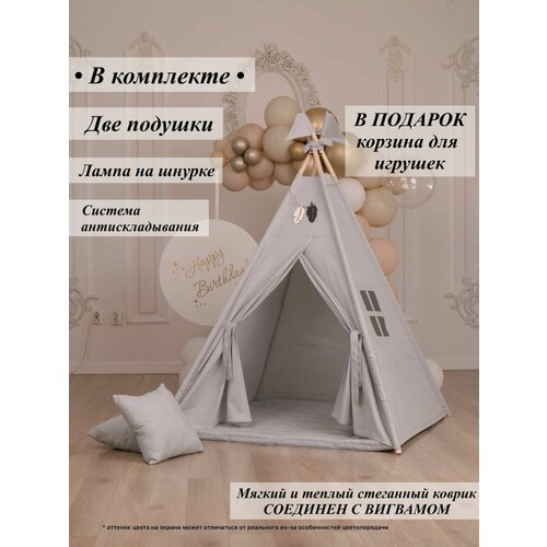 Купить Вигвам Палатка детская игровая , домик для детей , две подушки, корзина для игрушек, кемпинговая лампа с доставкой по всей России.