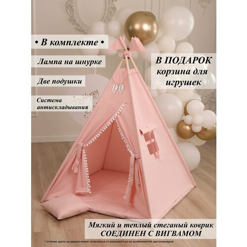 Купить Вигвам Палатка детская игровая , домик для детей , две подушки, корзина для игрушек, кемпинговая лампа с доставкой по всей России.