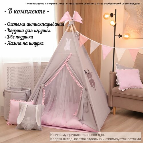 Купить Вигвам Палатка детская игровая , домик для детей, подушка, кемпинговая лампа с доставкой по всей России.