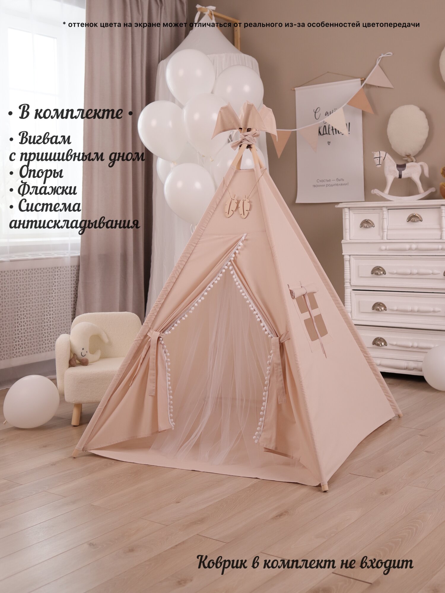 Купить Вигвам Палатка детская игровая , домик для детей, опоры, флажки, система антискладывания с доставкой по всей России.