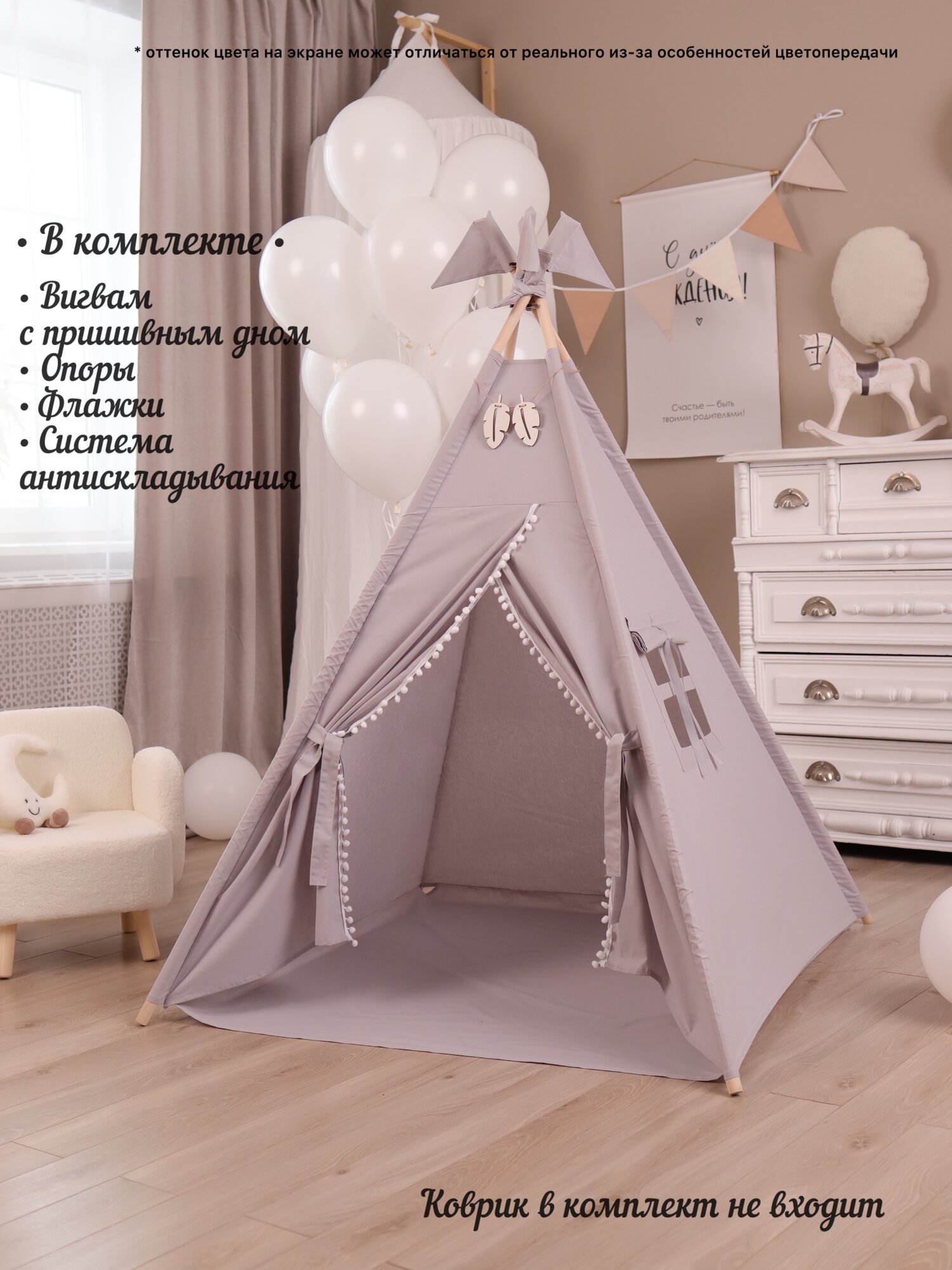 Купить Вигвам Палатка детская игровая , домик для детей, опоры, флажки, система антискладывания с доставкой по всей России.