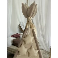Детский игровой вигвам (домик для детей) - оригинальный подарок для ребёнка, место, где ребенок будет играть и отдыхать. Вигвам просто собрать. Комплект состоит: вигвам (100 % хлопок) с окном и занавеской, флажки-перья на верх вигвама, прочный деревянный каркас из 4-х палок (шлифованная береза, палки сборные 8 штук по 90 см, преобразуются в 4 по 180 см.), веревка, система антискладывания, подушка, коврик фиксируется по углам к опорам, декор в виде трех звездочек. Уход: деликатная машинная стирка, 20 С, 800 оборотов отжим. Конструкция вигвама очень прочная, благодаря специальной системе антискладывания, что позволяет не складываться вигваму даже во время активных игр. Вигвам преображает интерьер, он подойдет в любую детскую и сделает её уютной и яркой. В вигваме интересно играть деткам самых разных возрастов, да и не только деткам, но и взрослым. VIGVAMIK производит вигвамы уже более 7 лет, гарантируем качество и надежность. Будем рады фото-отзывам).