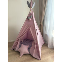 Детский игровой вигвам (домик для детей) - оригинальный подарок для ребёнка, место, где ребенок будет играть и отдыхать. Вигвам просто собрать. Комплект состоит: вигвам (100 % хлопок) с окном и занавеской, флажки-перья на верх вигвама, прочный деревянный каркас из 4-х палок (шлифованная береза, палки сборные 8 штук по 90 см, преобразуются в 4 по 180 см.), веревка, система антискладывания, подушка, коврик фиксируется по углам к опорам, декор в виде трех звездочек. Уход: деликатная машинная стирка, 20 С, 800 оборотов отжим. Конструкция вигвама очень прочная, благодаря специальной системе антискладывания, что позволяет не складываться вигваму даже во время активных игр. Вигвам преображает интерьер, он подойдет в любую детскую и сделает её уютной и яркой. В вигваме интересно играть деткам самых разных возрастов, да и не только деткам, но и взрослым. VIGVAMIK производит вигвамы уже более 7 лет, гарантируем качество и надежность. Будем рады фото-отзывам).