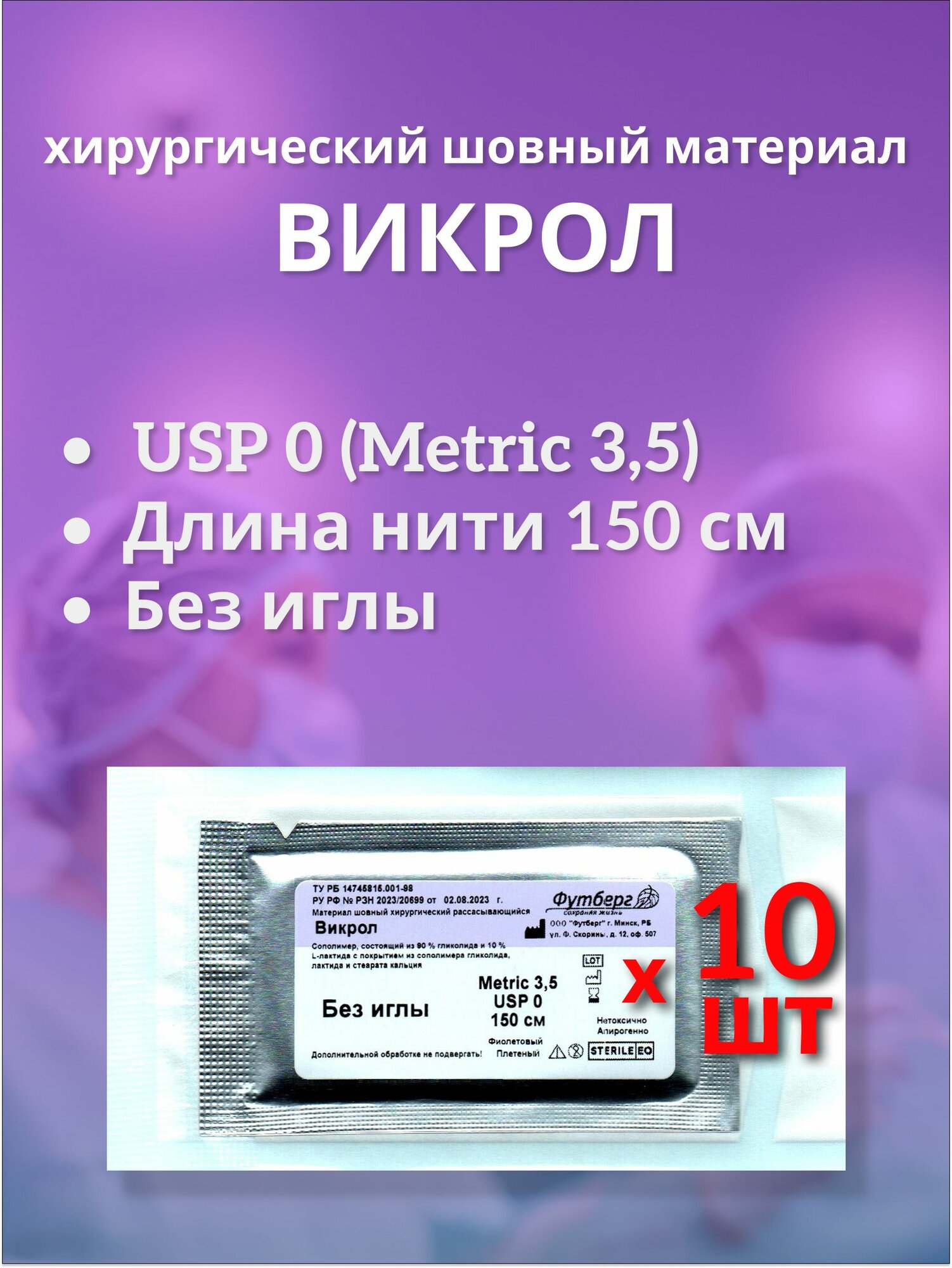 Викрол USP 0 (M3,5), длина нити 150 см, без иглы, (10 штук) Шовный хирургический материал Футберг: сравнение цен, характеристики, фото, актуальное наличие и цены.