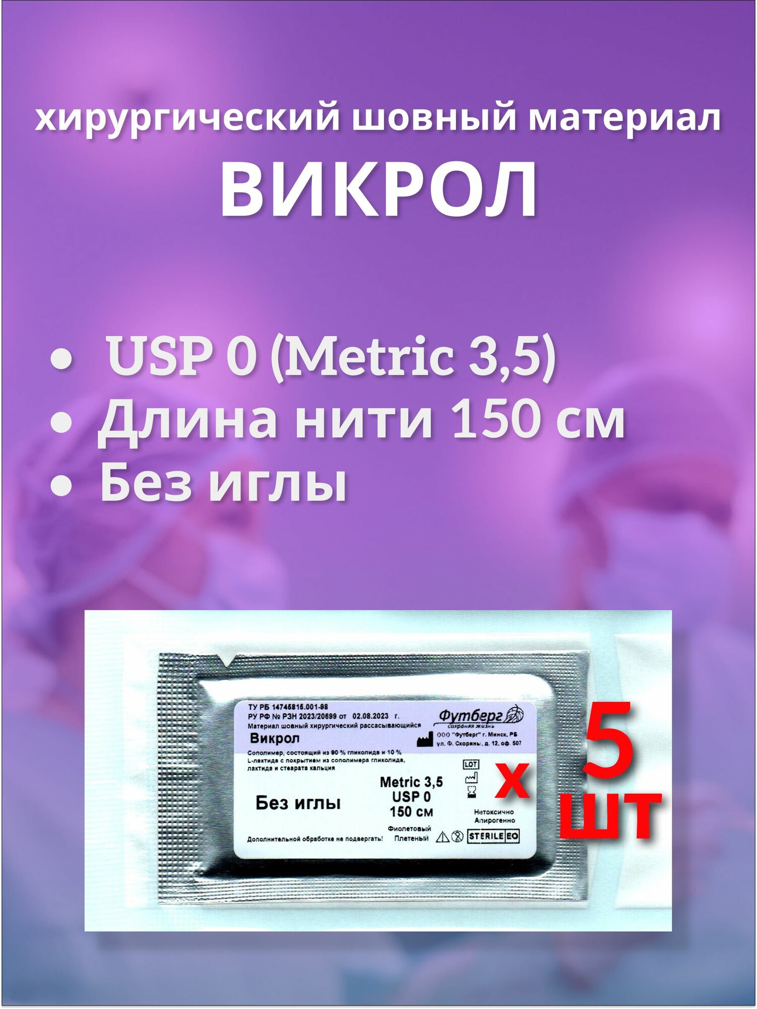 Викрол USP 0 (M3,5), длина нити 150 см, без иглы, (5 штук) Шовный хирургический материал Футберг: сравнение цен, характеристики, фото, актуальное наличие и цены.