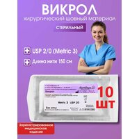 Викрол USP 2-0 (M3), длина 150 см, без иглы, (10 штук) Шовный хирургический материал Футберг: сравнение цен, характеристики, фото, актуальное наличие и цены.