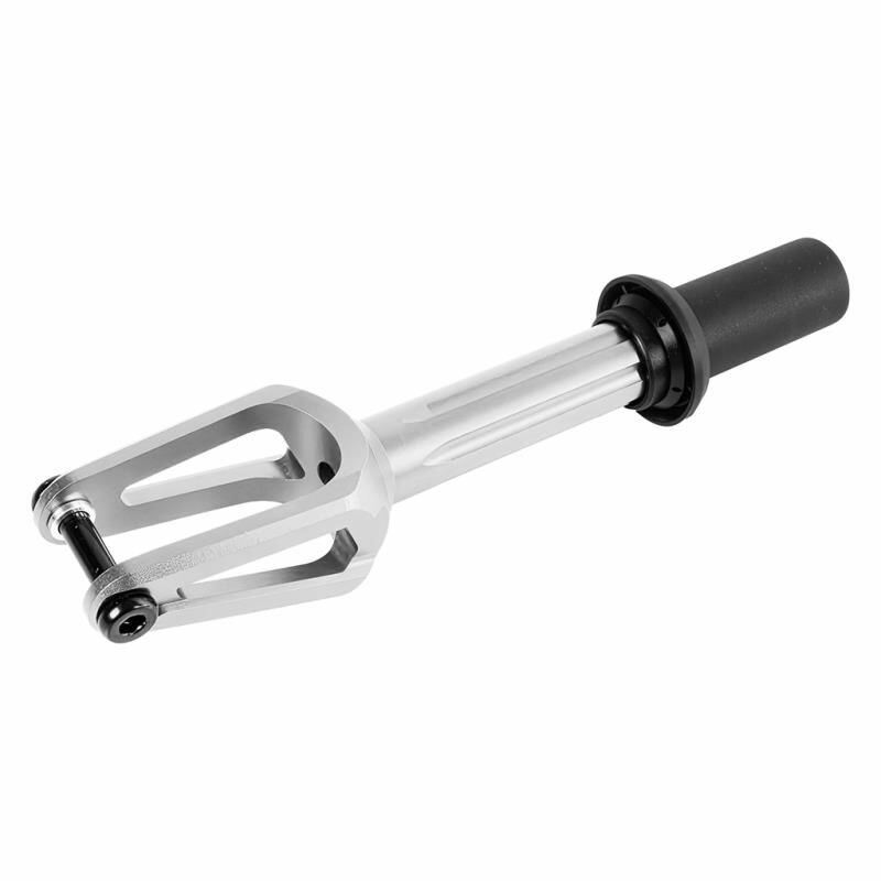 Вилка Tech Team Zefir Lite IHC grey - крутая вилка из легкого алюминия с пластиковой IHC колбой. Модель прочная, с усиленным штоком длиной 160 мм, рассчитана на диаметр колес от 100 мм до 120 мм шириной до 24 мм. В комплекте ось 8 мм, проставки для колеса 24 мм. Вилки для самокатов – незаменимый аксессуар для тех, кто увлекается самокатным спортом. Применяя вилку для самокатов, можно значительно увеличить производительность и комфорт во время катания. Специально разработанные для этой цели, они позволяют обеспечить максимальную безопасность и комфорт при передвижении на самокате. Наши вилки для самокатов изготовлены из высококачественных материалов, обеспечивая прочность и надежность в использовании. Выдерживая большие нагрузки и имея отличную амортизацию. Этот аксессуар легко крепится к раме самоката и надежно фиксируется на месте благодаря специальным креплениям. Вилки для самокатов обладают долгим сроком службы, что позволяет наслаждаться своими поездками на самокате на протяжении долгого времени. Благодаря своей конструкции, вилка для самокатов обеспечивает оптимальное распределение нагрузки и позволяет снизить утомляемость при длительных поездках. Используя передовые технологии, наши вилки обеспечивают отличную устойчивость и позволяют легко управлять своим самокатом даже на высокой скорости. Они позволяют использовать самокат в любых условиях без каких-либо ограничений. Приобретая вилку для самоката, вы инвестируете в свое удовольствие и безопасность. Этот аксессуар является отличным выбором для тех, кто ценит качество, функциональность и стиль. Позвольте себе испытать все преимущества использования этой вилки и оцените ее эффективность на собственном опыте. Добавьте ее к своей коллекции аксессуаров и наслаждайтесь каждой поездкой!