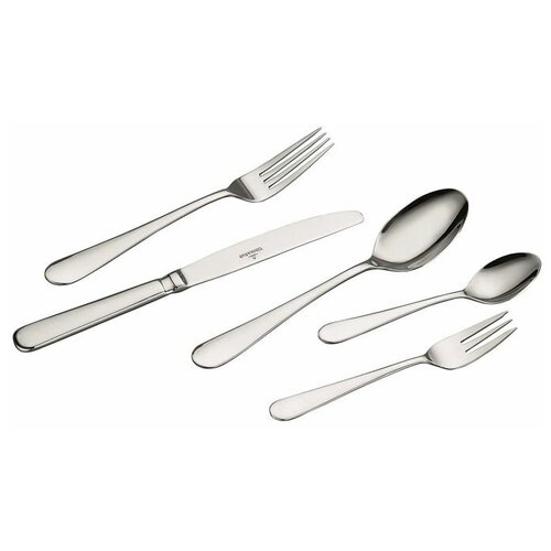 В набор входит: 6 x столовая ложка, длина 20,3 см; 6 x столовая вилка, длина 20 см; 6 x десертная вилка, длина 15,8 см; 6 x нож столовый, длина 23 см; 6 x ложка кофейная, длина 14,5 см.