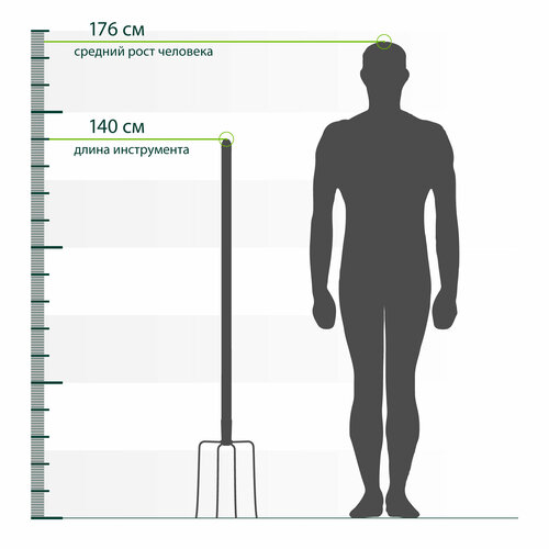 В комплекте с вилами идет черенок длиной 63807 мм, что обеспечивает удобство и комфорт при работе.