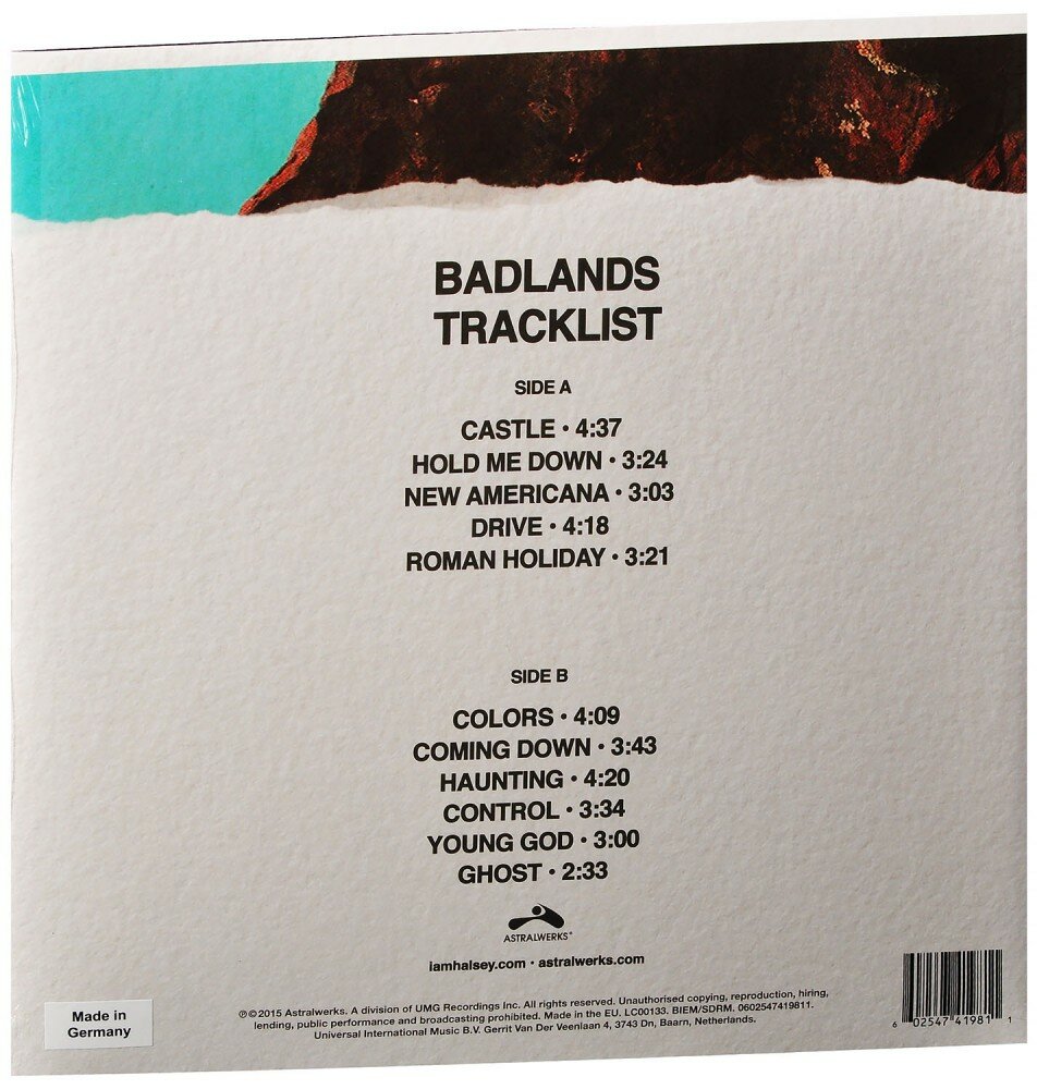 | Треклист | A1 Castle 4:37 A2 Hold Me Down 3:24 A3 New Americana 3:03 A4 Drive 4:18 A5 Roman Holiday 4:21 B1 Colors 4:09 B2 Coming Down 3:43 B3 Haunting 4:20 B4 Control 3:34 B5 Young God 3:00 B6 Ghost 2:33 |
