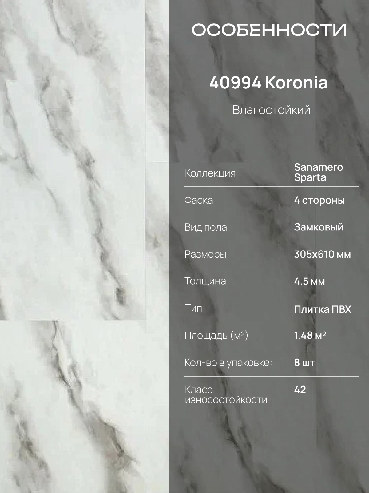 Купить Виниловая плитка SPC Sanamero «Koronia» 40994, влагостойкая, 1.48м² с доставкой по всей России. Виниловая плитка SPC Sanamero «Koronia» 40994, влагостойкая, 1.48м²: сравнение цен, характеристики, фото, актуальное наличие и цены.