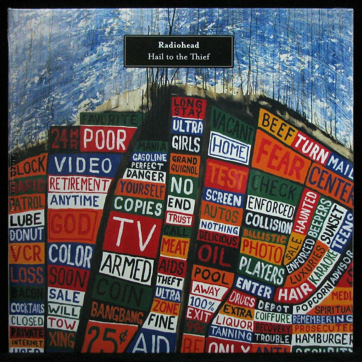 2 × Vinyl Шестой альбом Hail to the Thief записывался с сентября 2002 г. по февраль 2003 г. снова вместе с Найджелом Годричем, хотя некоторые новые песни Radiohead исполняли во время летнего турне по Португалии и Испании. Вышедший в июне 2003 г. альбом в целом был встречен критикой положительно, хотя некоторые обозреватели отмечали, что на Hail to the Thief Radiohead впервые за долгое время не предложили слушателям ничего нового. Однако это не помешало альбому дебютировать на третьем месте в Billboard 200, получить платиновый статус в Великобритании и номинацию на Грэмми за «Лучший альтернативный альбом». Песня «There There» заняла четвёртое место в британском чарте и номинировалась на Грэмми как «Лучшее вокальное рок исполнение дуэтом или группой». Radiohead обвиняли в том, что название Hail to the Thief (англ. Да здравствует вор) намекало на скандальные Президентские выборы в США 2000 г, результат которых был определён после пересчёта голосов. Сам Йорк отвергал обвинения в политизированности альбома и заявлял, что эту фразу он услышал в радиопрограмме на Радио 4, посвященной Джону Куинси Адамсу (Адамса избрала президентом Палата представителей после того, как он проиграл прямые выборы), и она ему очень понравилась.
