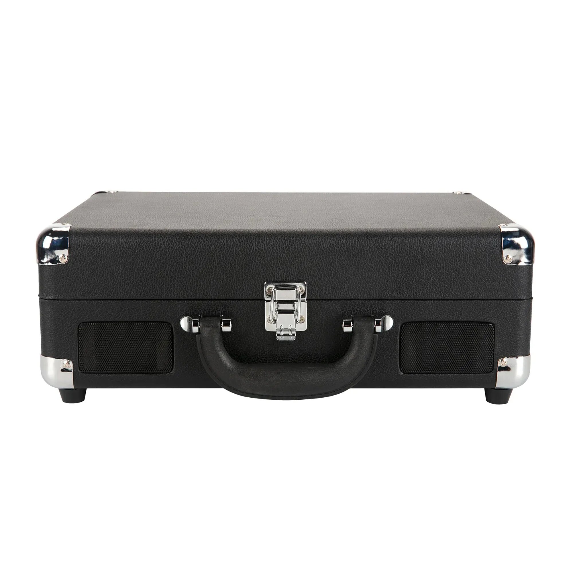 Проигрыватель защищен обитым экокожей футляром габаритами 450х260х120 мм, удобным для хранения и транспортировки. Встроенные динамики диаметром 3 дюйма суммарной мощностью 6 Вт и возможность подключения к пауэрбанку обеспечивают автономность устройства. Встроенный фонокорректор выравнивает и усиливает аудиосигналы.