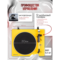 | Комплектация | проигрыватель винила; звукосниматель Audio-Technica AT-AT3600L; защитная крышка от пыли; документация |