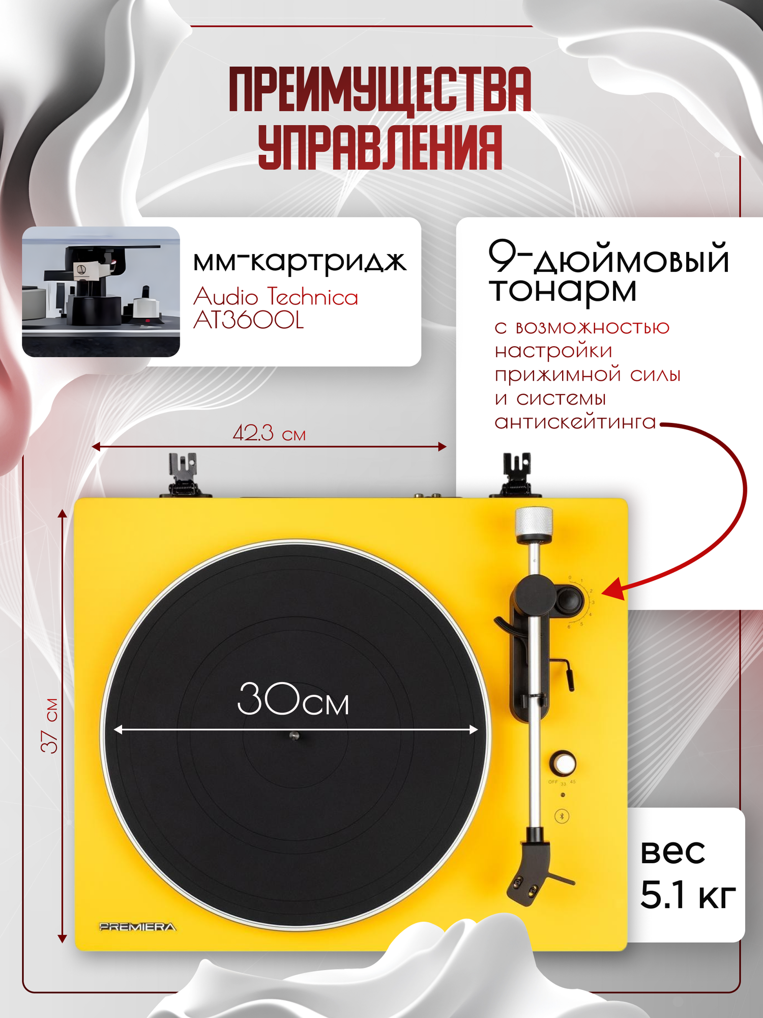 Виниловый проигрыватель Premiera «ECO BT», встроенный фонокорректор, yellow: сравнение цен, характеристики, фото, актуальное наличие и цены.