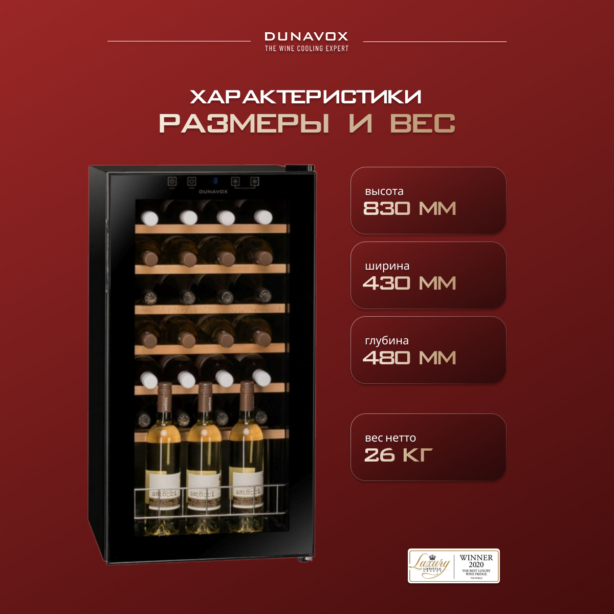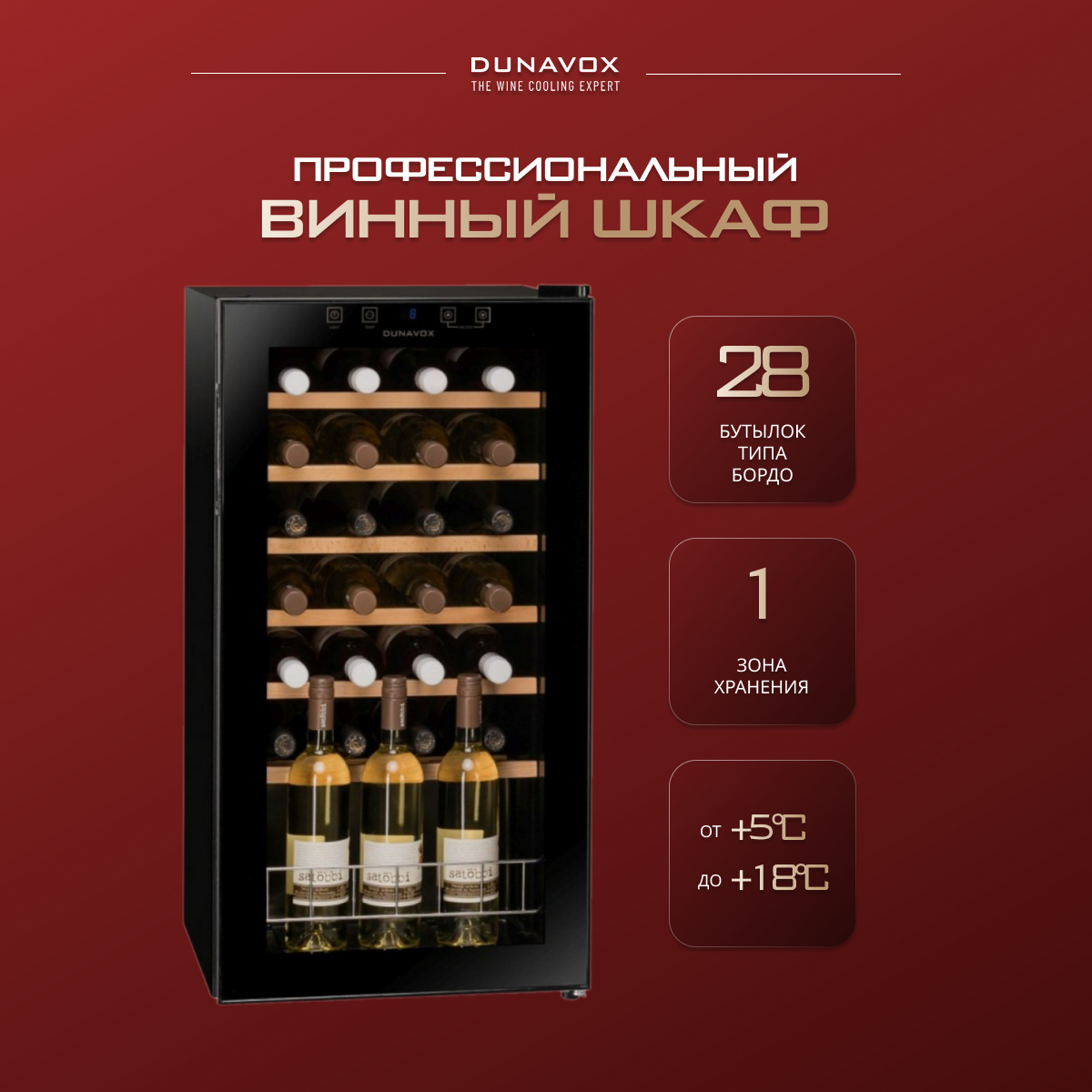 Винный холодильный шкаф Dunavox DXFH-28.88 компрессорный (отдельностоящий холодильник для вина на 28 бутылок): сравнение цен, характеристики, фото, актуальное наличие и цены.
