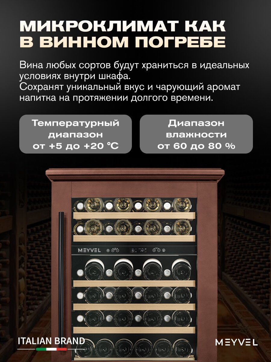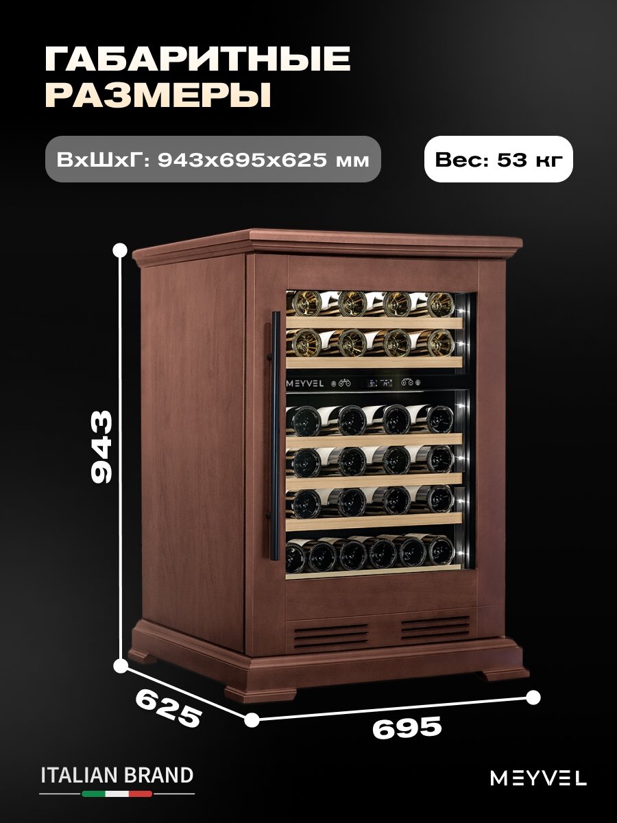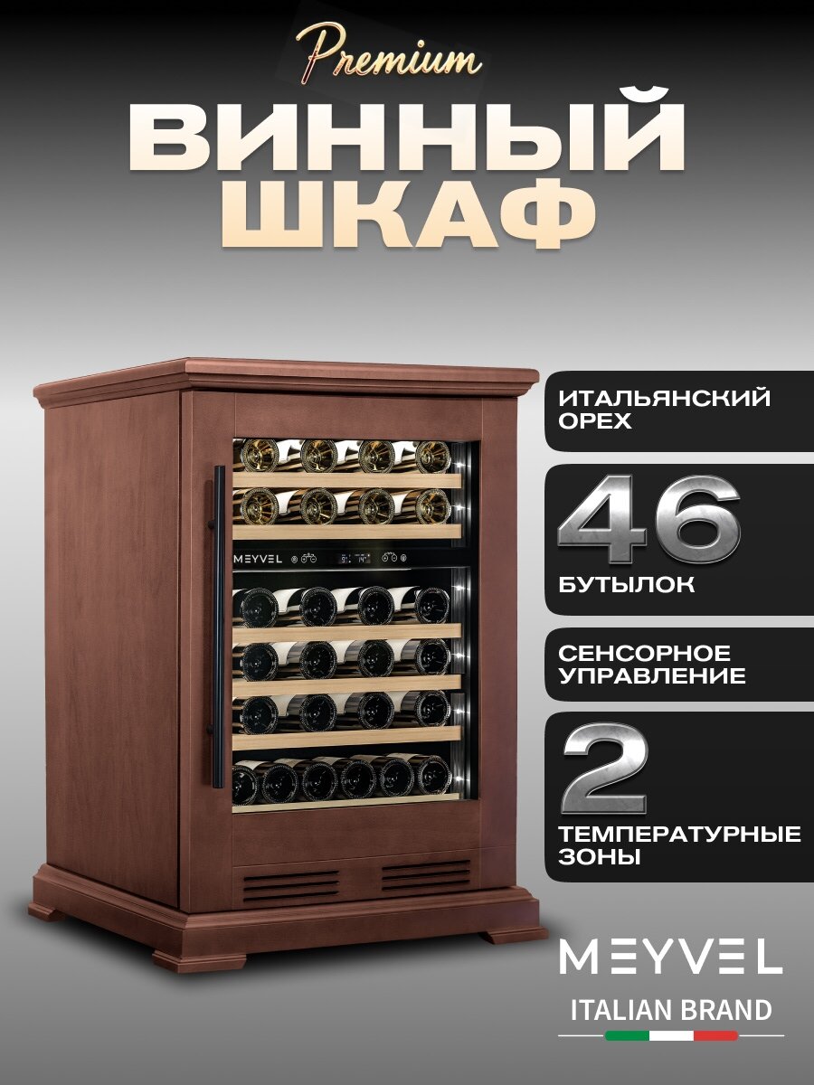 Винный холодильный шкаф компрессорный Meyvel MV46PRO-KBT2 (Итальянский орех) (отдельностоящий холодильник для вина на 46 бутылок): сравнение цен, характеристики, фото, актуальное наличие и цены.
