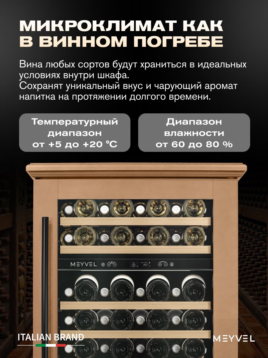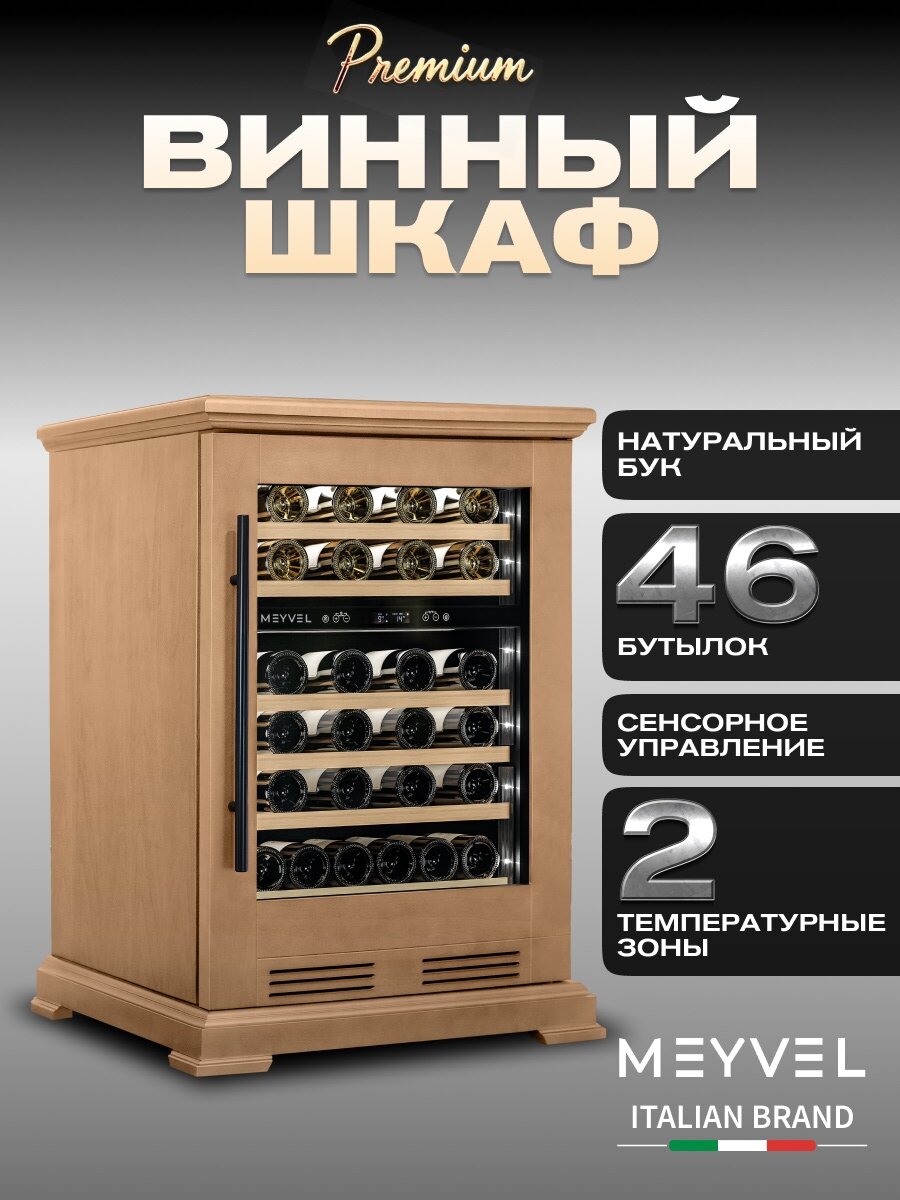 Винный холодильный шкаф компрессорный Meyvel MV46PRO-KBT2 (Натуральный бук) (отдельностоящий холодильник для вина на 46 бутылок): сравнение цен, характеристики, фото, актуальное наличие и цены.