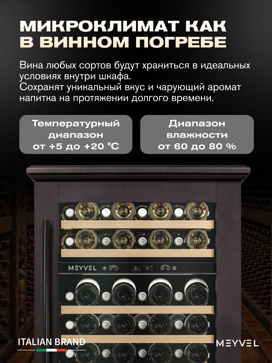 Винный холодильный шкаф компрессорный Meyvel MV46PRO-KBT2 (Тёмный шоколад) (отдельностоящий холодильник для вина на 46 бутылок): сравнение цен, характеристики, фото, актуальное наличие и цены.