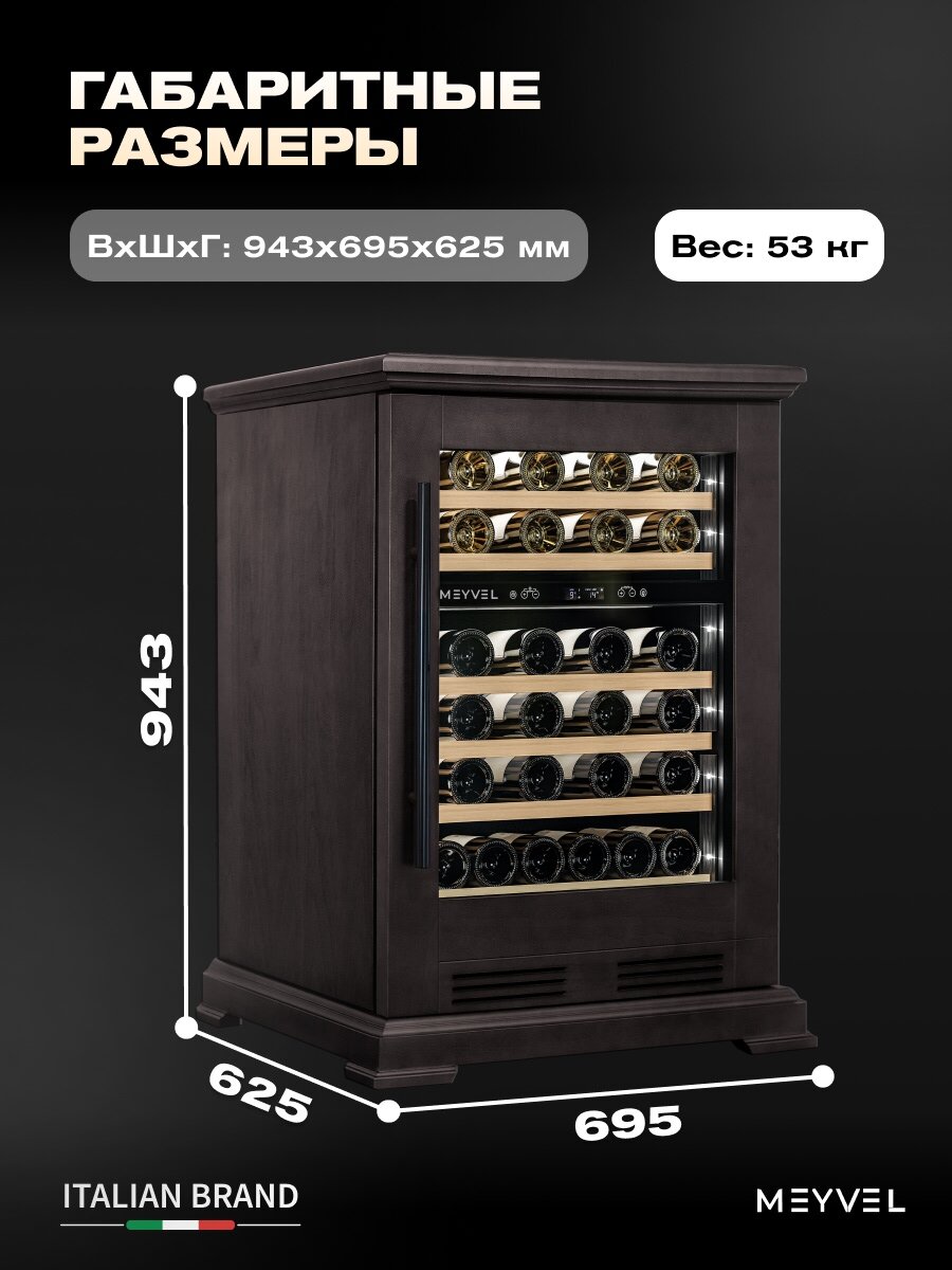 Купить Винный холодильный шкаф компрессорный Meyvel MV46PRO-KBT2 (Тёмный шоколад) (отдельностоящий холодильник для вина на 46 бутылок) с доставкой по всей России.