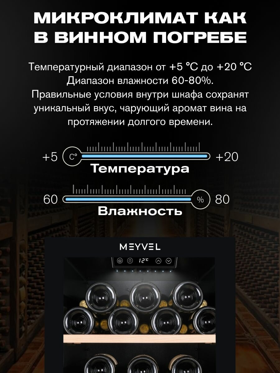 Винный шкаф Meyvel MV105-KBF1 — это сочетание стиля, функциональности и надежности, которое станет надежным помощником в создании винной коллекции.