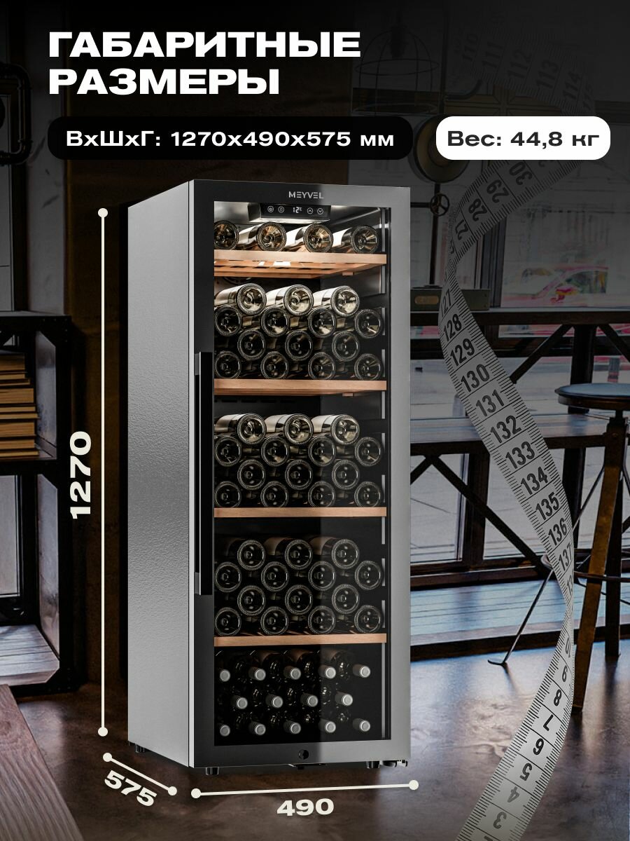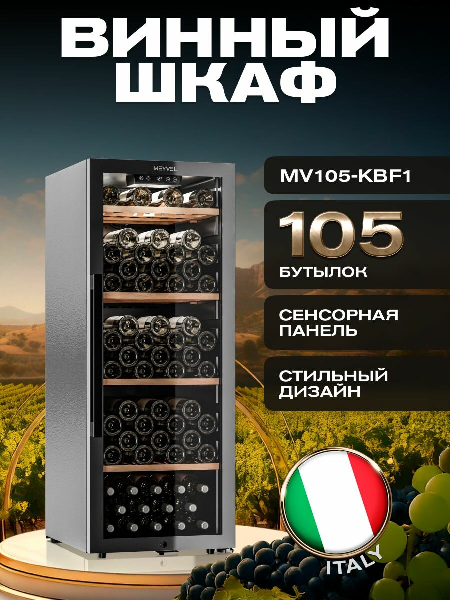 Винный шкаф Meyvel MV105-KBF1 — идеальное решение для истинных ценителей вина, который вмещает до 105 бутылок вашего любимого напитка и хранит их в оптимальных условиях.