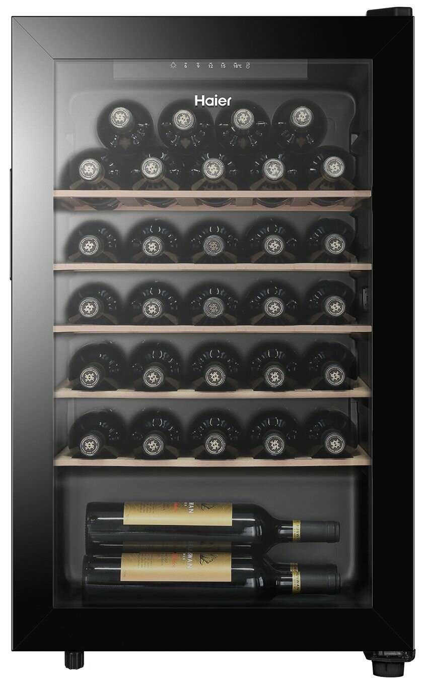Винный шкаф Haier FWC33GA, компрессорный холодильник для вина, 33 бутылки, черный: сравнение цен, характеристики, фото, актуальное наличие и цены.