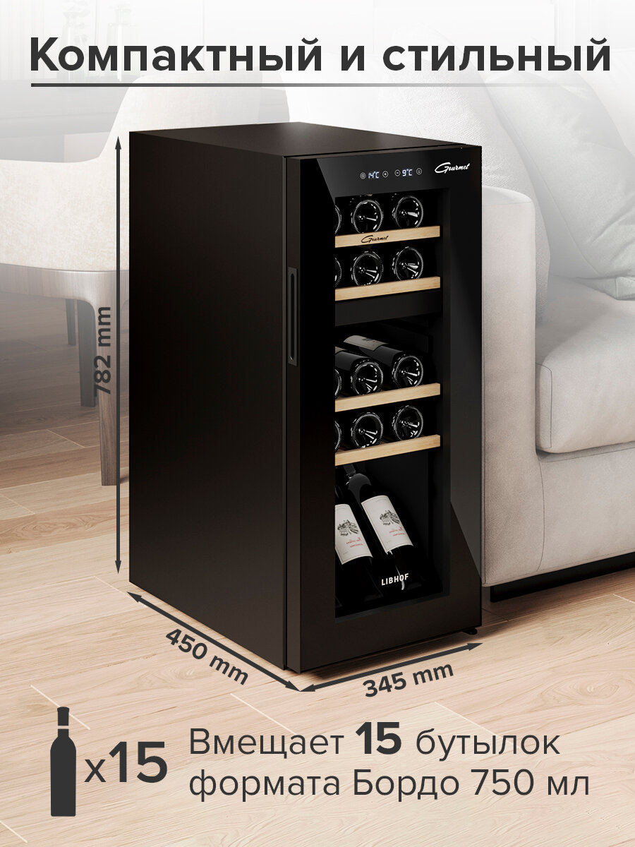 | Емкость винного шкафа, бут. | 15 |