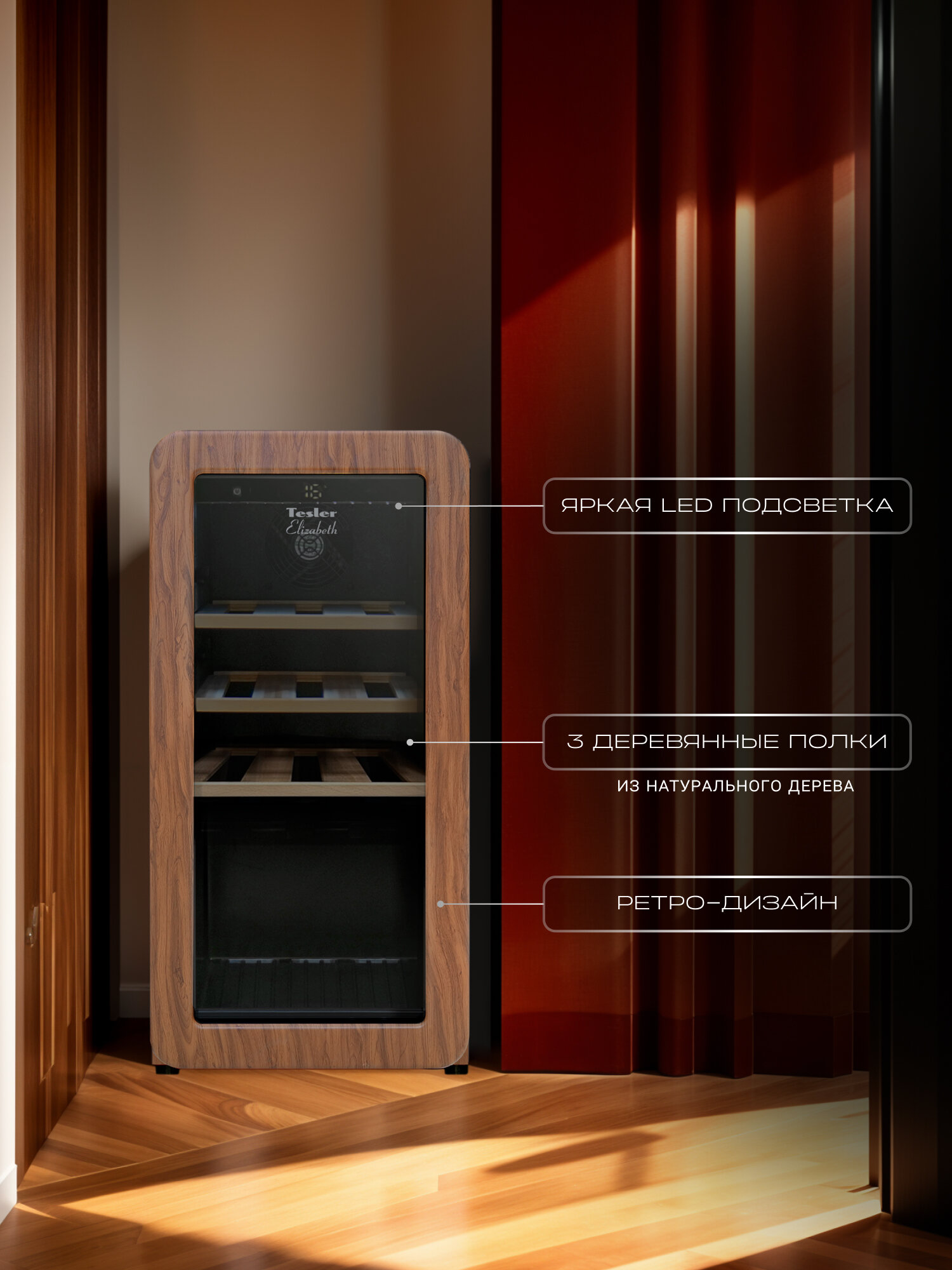 | Емкость винного шкафа, бут. | 18 |