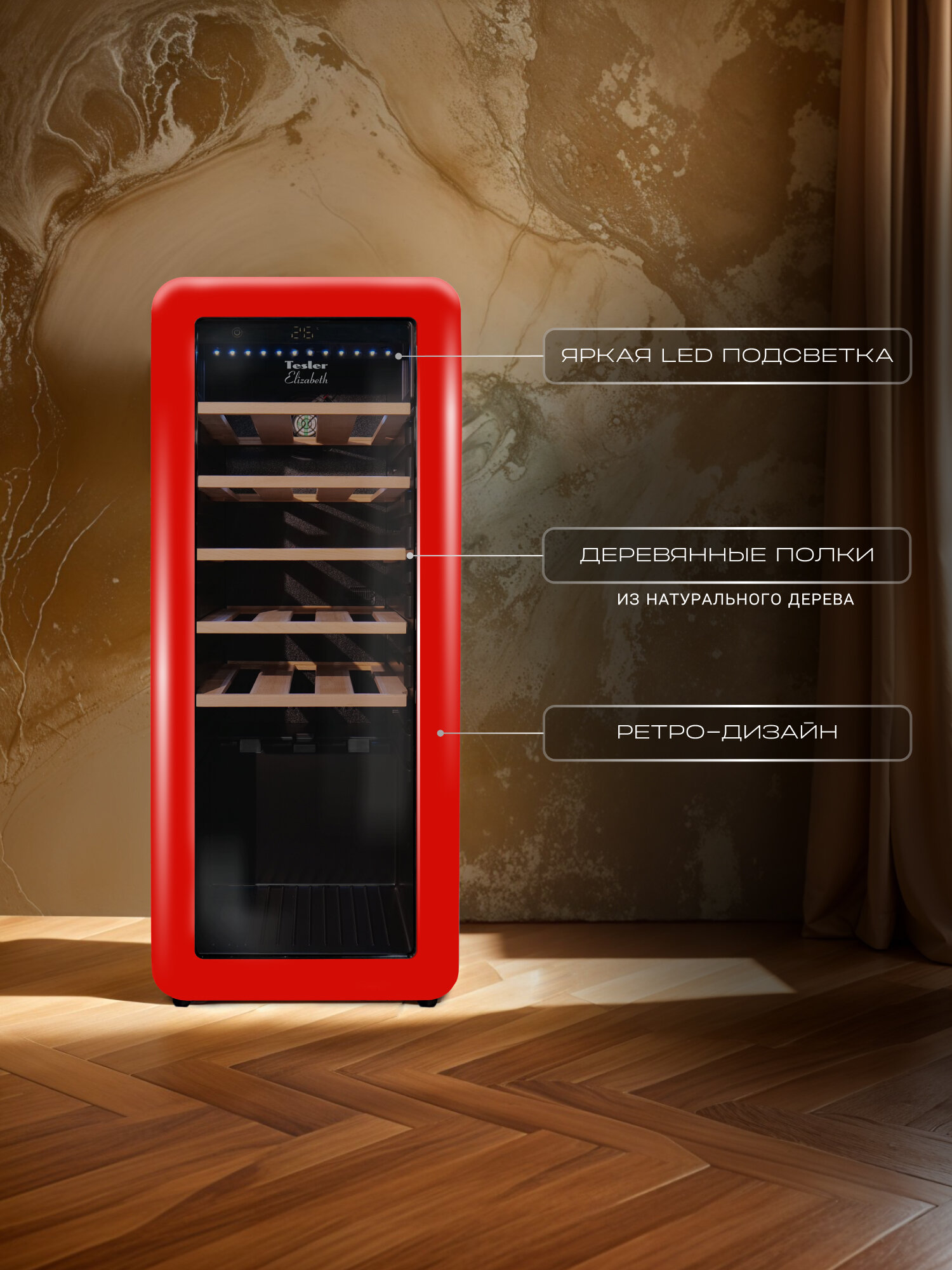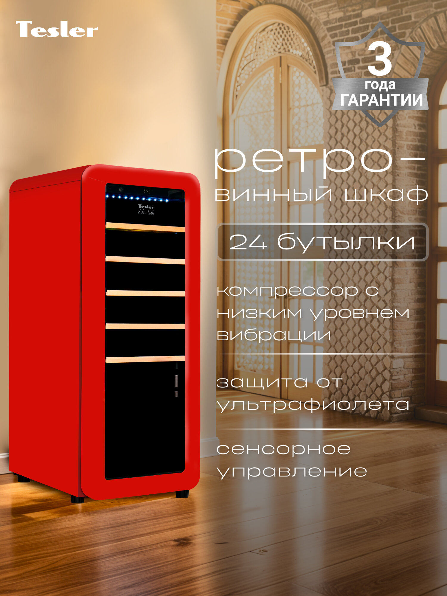 Винный шкаф TESLER CWC-248 RUBY RED, рубиновый красный, 24 бут, электронное управление: сравнение цен, характеристики, фото, актуальное наличие и цены.