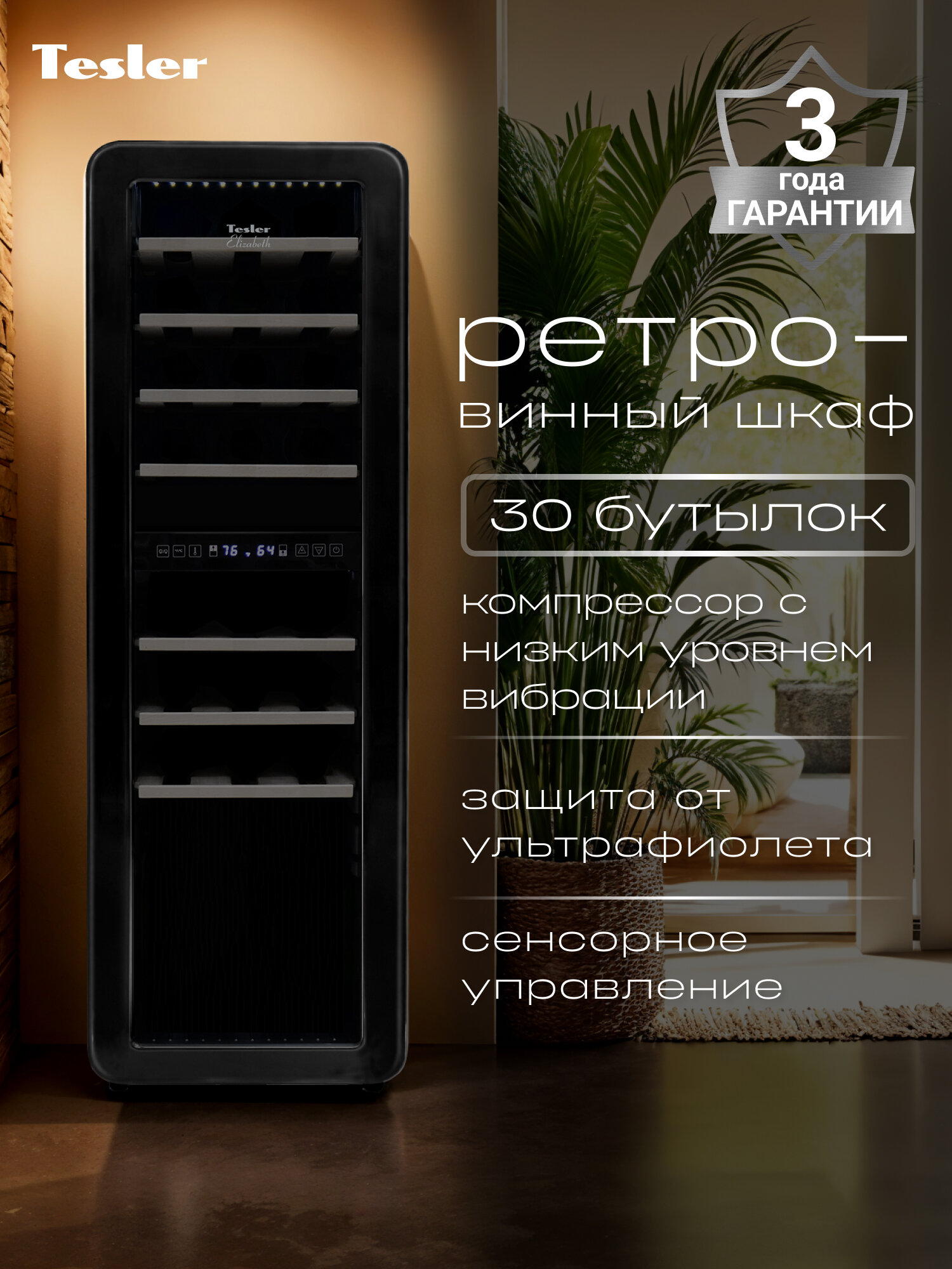 Винный шкаф TESLER CWC-308 BLACK, черный, 30 бут, электронное управление: сравнение цен, характеристики, фото, актуальное наличие и цены.