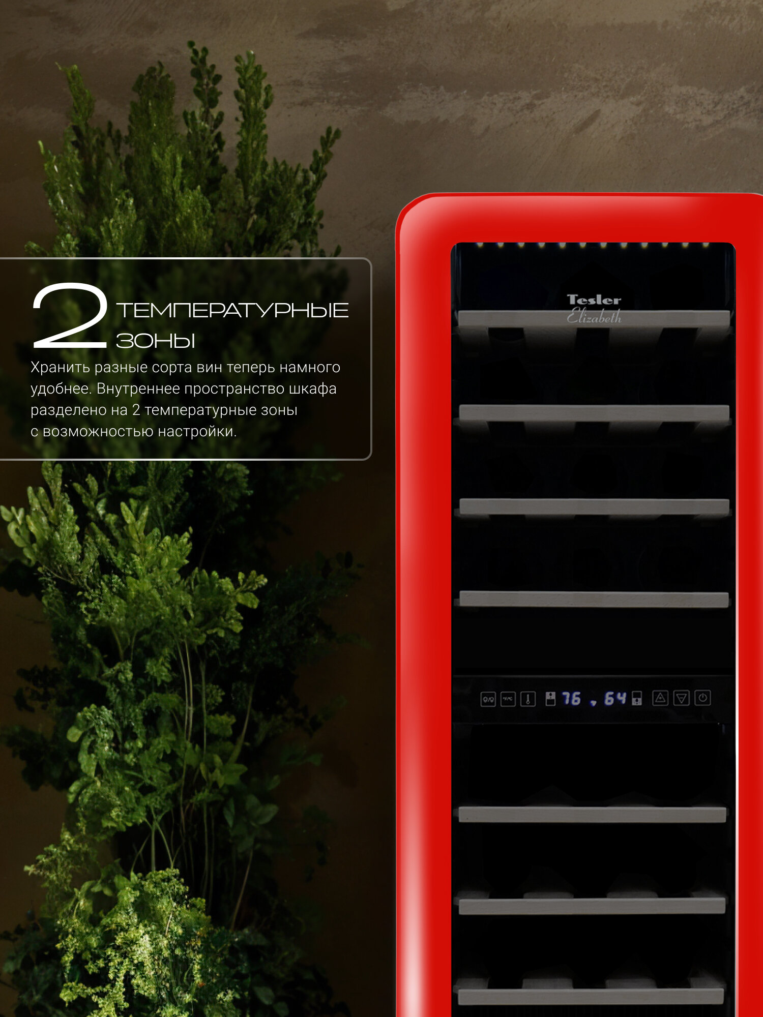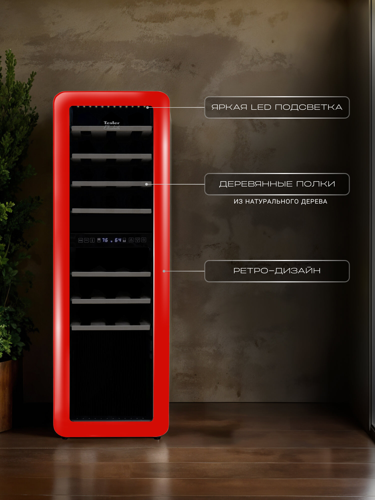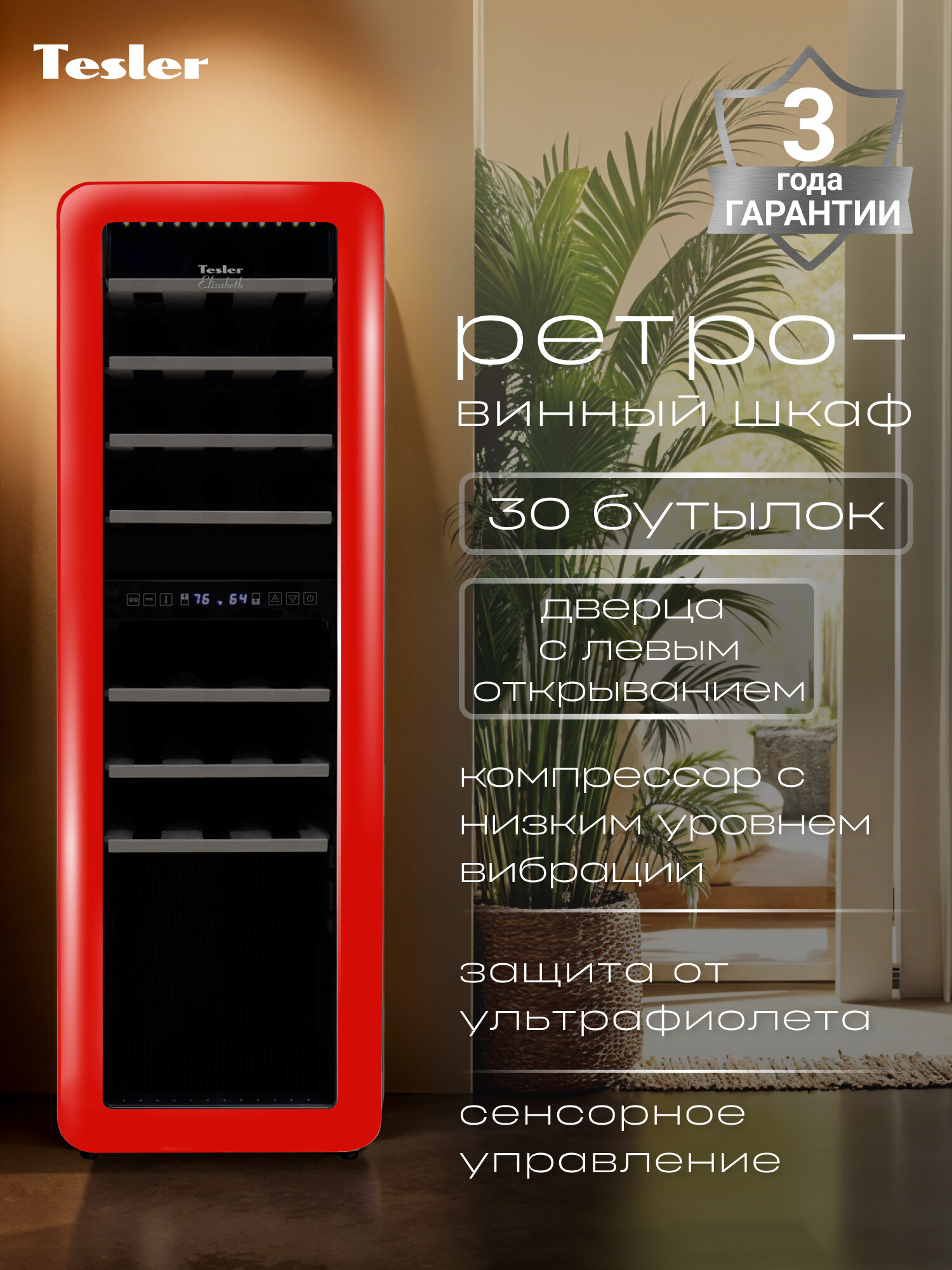 Винный шкаф TESLER CWC-308 RUBY RED LD, рубиновый красный, левостороннее открытие дверцы, 30 бут, электронное управление: сравнение цен, характеристики, фото, актуальное наличие и цены.