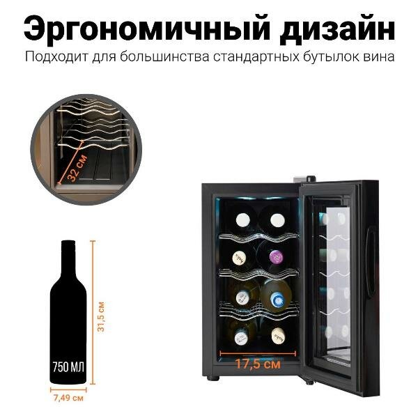 Винный шкаф Tesler WCV-080 BLACK: сравнение цен, характеристики, фото, актуальное наличие и цены.
