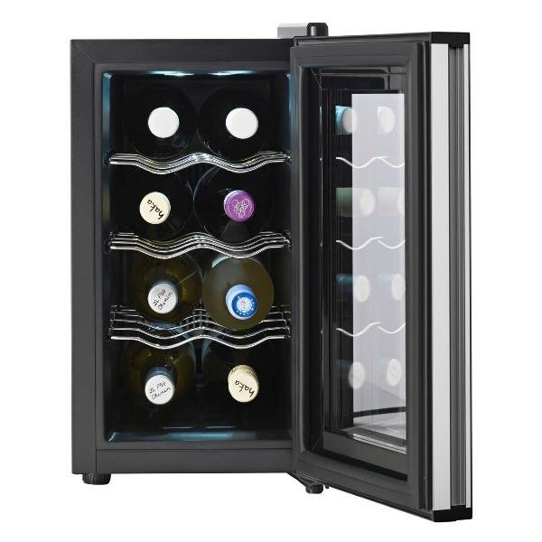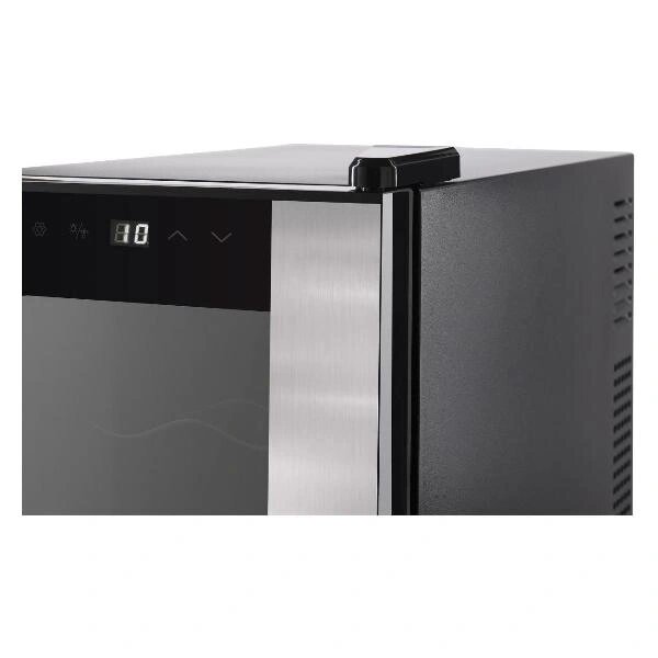 Винный шкаф до 140 см Tesler WCV-080 серебристого цвета подходит для установки в маленькой квартире. Вместительность камеры устройства составляет 21 л. Внутри находятся три хромированных полки. В конструкцию интегрирована светодиодная подсветка голубого цвета. Двигатель устройства работает практически бесшумно. Охлаждение выполнено на базе термоэлектрической системы. Для управления и изменения настроек шкафа используется сенсорная панель. Корпус устройства выполнен из металла. Материал исполнения дверцы — утолщенное стекло с зеркальным покрытием, не пропускающим внутрь УФ-лучи.