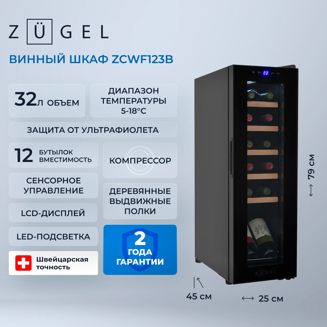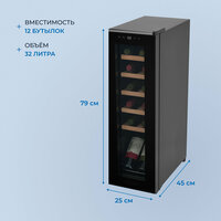 | Емкость винного шкафа, бут. | 8 |