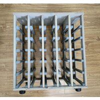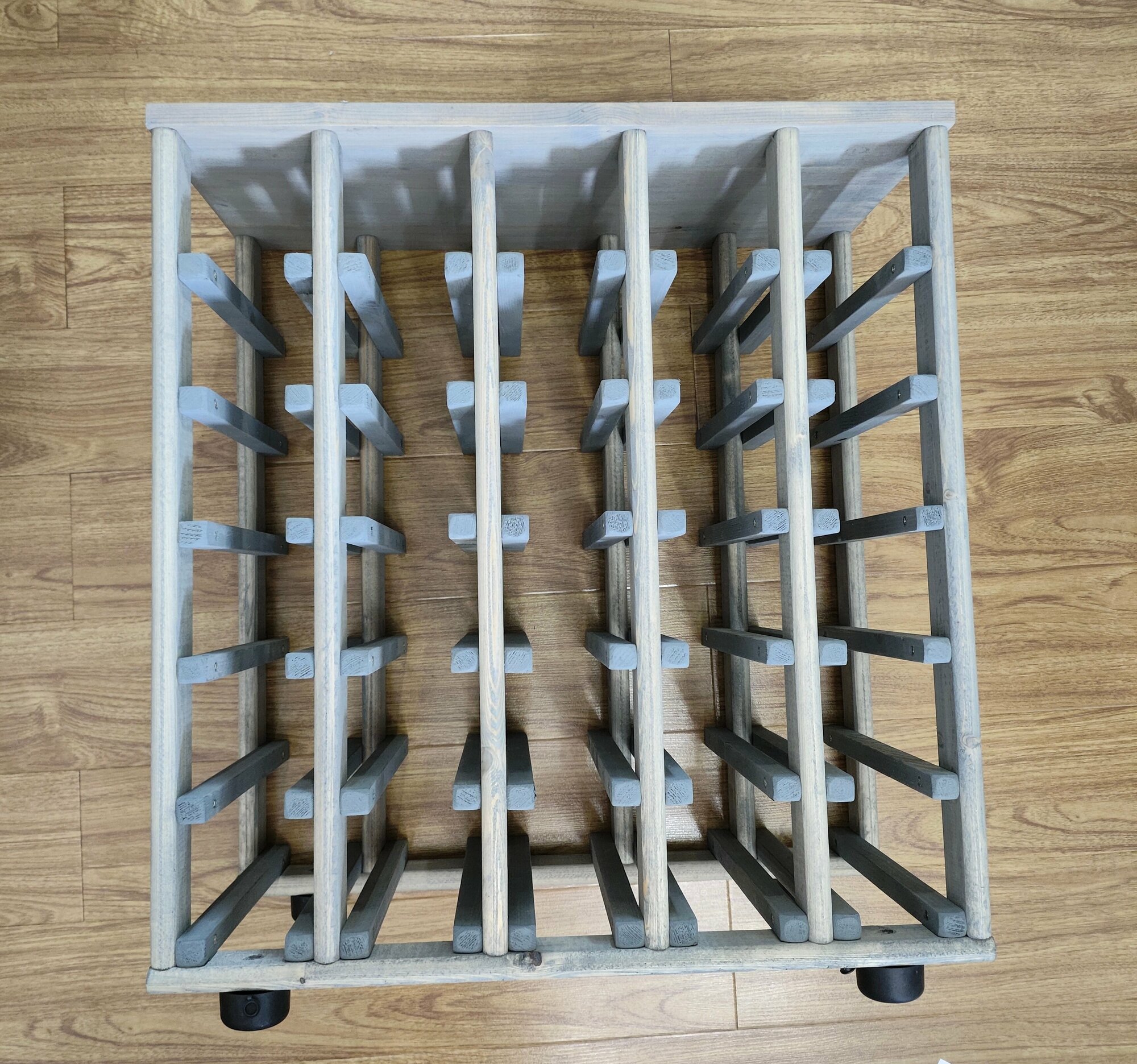 Вместительность стеллажа позволяет разместить до 30 бутылок вина или шампанского объемом от 0,75 до 1 литра и диаметром от 7 до 10 сантиметров. При необходимости, на стеллаж можно установить еще один, благодаря конструкции, предусматривающей такую возможность.