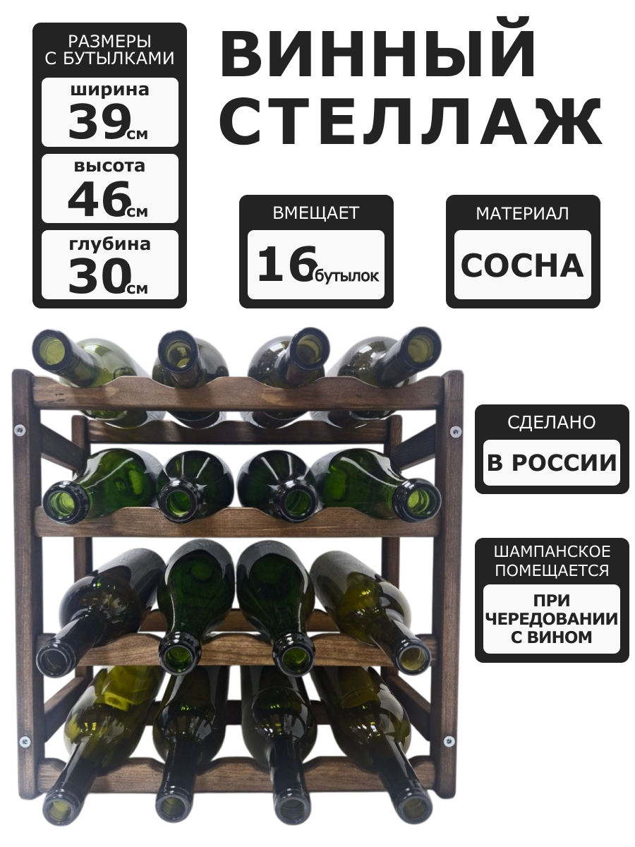 Купить Винный стеллаж для 16 бутылок коричневый реечный с доставкой по всей России. Винный стеллаж для 16 бутылок коричневый реечный: сравнение цен, характеристики, фото, актуальное наличие и цены.