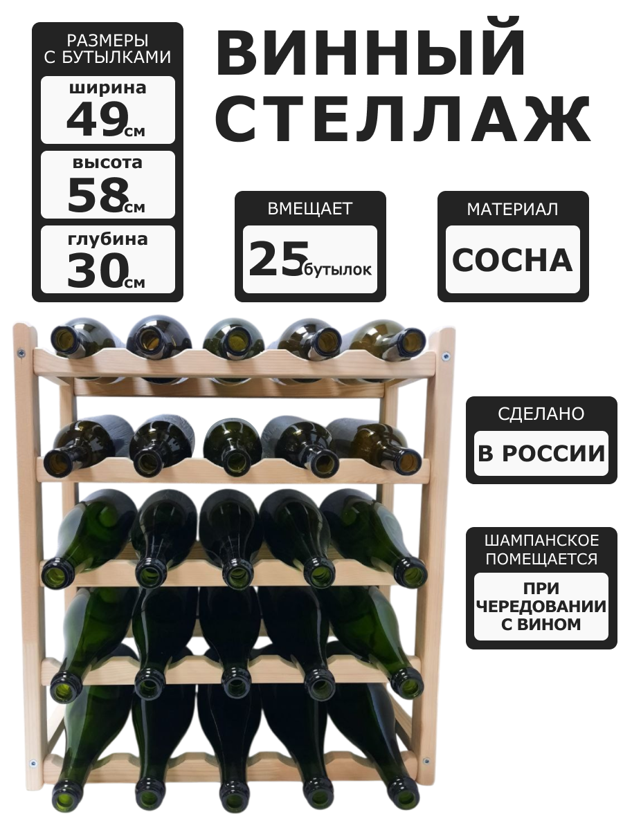 Купить Винный стеллаж для 25 бутылок в натуральном цвете реечный. с доставкой по всей России. Винный стеллаж для 25 бутылок в натуральном цвете реечный.: сравнение цен, характеристики, фото, актуальное наличие и цены.