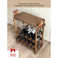 Можно совместить с другими секциями на свой вкус: винный стеллаж или с ящиком и держателем чайных кружек или же подставка под вина и держатель бокалов и шампуров. Посмотрите галерею фото. Подойдет как подставка на кухню или в баню, а также в подарок в загородный частный дом, например в винный погреб или шкаф. Эта домашняя винная полка, мини бар подарочный для бутылок вмещает 10 бутылок вина или шампанского (подходят бутылки объемом от 0,75 до 1 литра, диаметром от 7 до 10 сантиметров). Также подойдет для баров и ресторанов. Барная полка, полка для барной стойки требует сборки и собирается за 10 минут, все необходимые крепежи в комплекте! Наш стеллаж, минибар деревянный прослужит Вам долгое время, т. к. покрыт натуральным маслом с добавлением воском. Экологичен и безопасен. Подставка для бутылок вместительная - хватит разместить весь ваш запас вина или как полка в погреб. Винный стеллаж можно использовать в торговом зале магазина, как мини стеллаж торговый винный для выкладки товара. Бар для бутылок деревянный, держатель для бутылок, приспособления для кухни - это отличный подарок рыбаку, начальнику, руководителю боссу, врачу мужчине. Барный инвентарь, винные аксессуары - эстетичные штучки приспособления для кухни. Сделайте подарок мужу на годовщину свадьбы или подарок на свадьбу молодожёнам, ну или подарок виноделу. Используйте мини бар для дома в качестве полки для подвала, организуйте зону хранения для порядка. Размер винного шкафа для алкоголя, барного набора, набора для вина: 26х52х70 см.