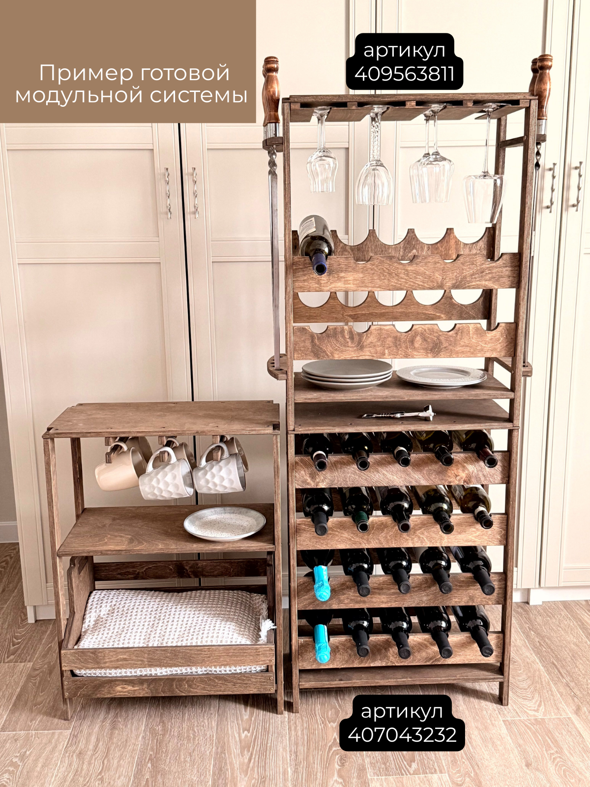 Винный стеллаж-полка для 20 бутылок напольный модульный выполнен из качественной сосны, что обеспечивает его долговечность и надежность. Собственная ячейка для каждой бутылки гарантирует надежное хранение вашей коллекции.