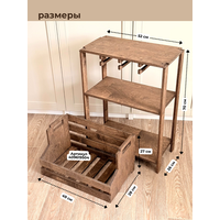 Винный стеллаж для хранения вина модульный в беседку или на кухню, винница для бутылок станет украшением современного интерьера в стиле Лофт. Можно совместить с другими секциями на свой вкус: винный стеллаж или с ящиком и держателем чайных кружек или же подставка под вина и держатель бокалов и шампуров. Посмотрите галерею фото. Подойдет как подставка на кухню или в баню, а также в подарок в загородный частный дом, например в винный погреб или шкаф. Эта домашняя винная полка, мини бар подарочный для бутылок вмещает несколько бутылок вина или шампанского (подходят бутылки объемом от 0,75 до 1 литра, диаметром от 7 до 10 сантиметров). Также подойдет для баров и ресторанов. Барная полка, полка для барной стойки требует сборки и собирается за 10 минут, все необходимые крепежи в комплекте! Наш стеллаж, минибар деревянный прослужит Вам долгое время, т. к. покрыт натуральным маслом с добавkением воском. Экологичен и безопасен. Подставка для бутылок вместительная - хватит разместить весь ваш запас вина или как полка в погреб. Винный стеллаж можно использовать в торгjвом зале магазина, как мини стеллаж торговый винный для выкладки товара. Бар для бутылок деревянный, держатель для бутылок, приспособления для кухни - это отличный подарок рыбаку, начальнику, руководителю боссу, врачу мужчине. Барный инвентарь, винные аксессуары - эстетичные штучки приспособления для кухни. Сделайте подарок мужу на годовщину свадьбы или подарок на свадьбу молодожёнам, ну или подарок виноделу. Используйте мини бар для дома в качестве полки для подвала, организуйте зону хранения для порядка. Размер винного шкафа для алкоголя, барного набора, набора для вина: 26х52х70 см.