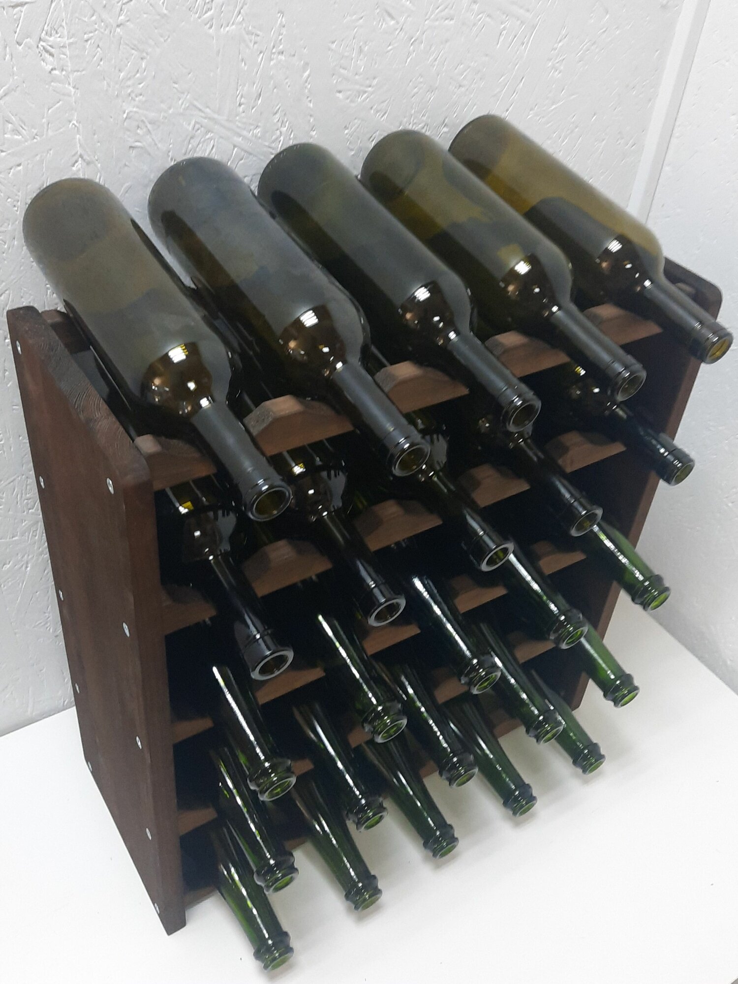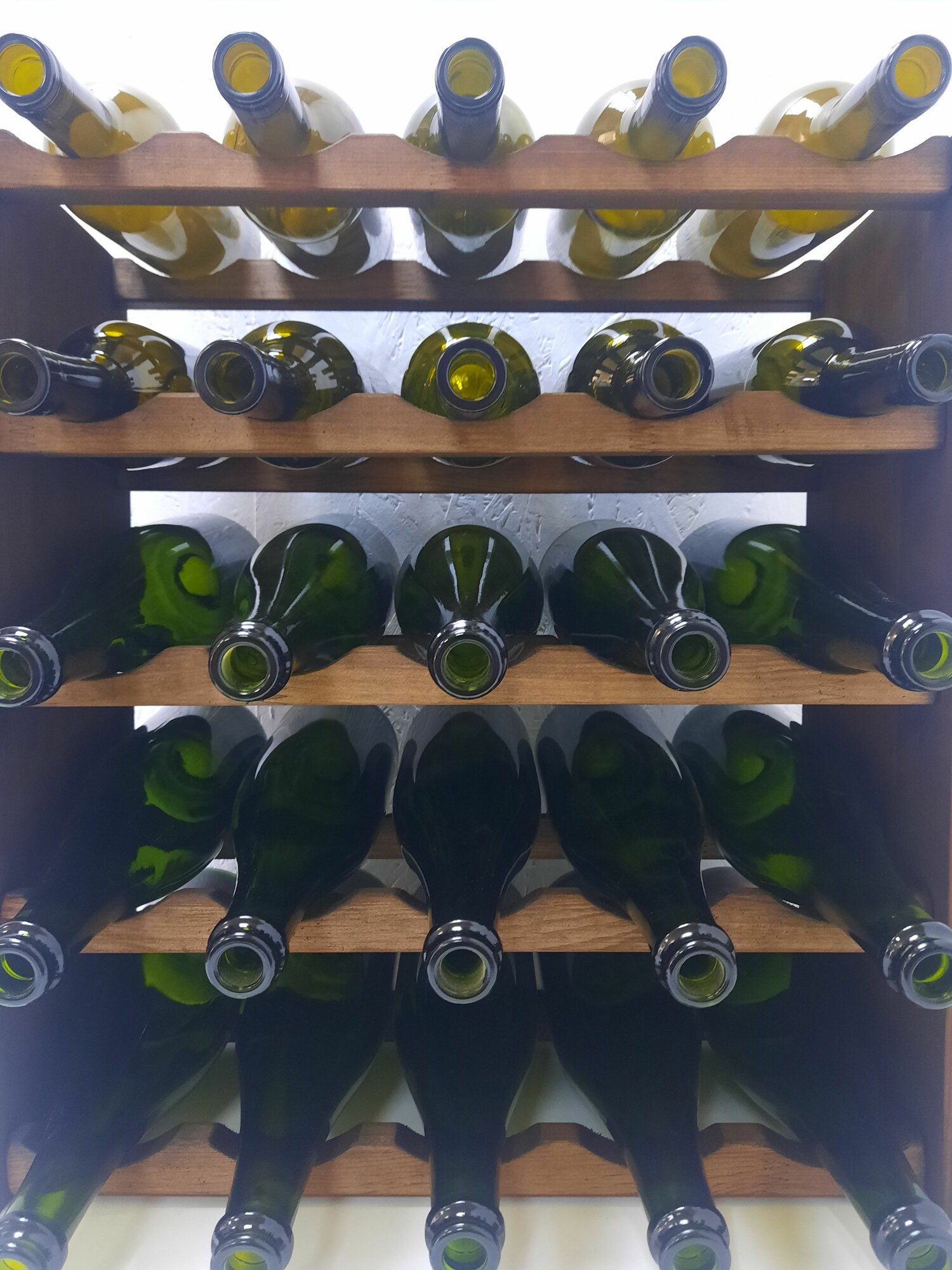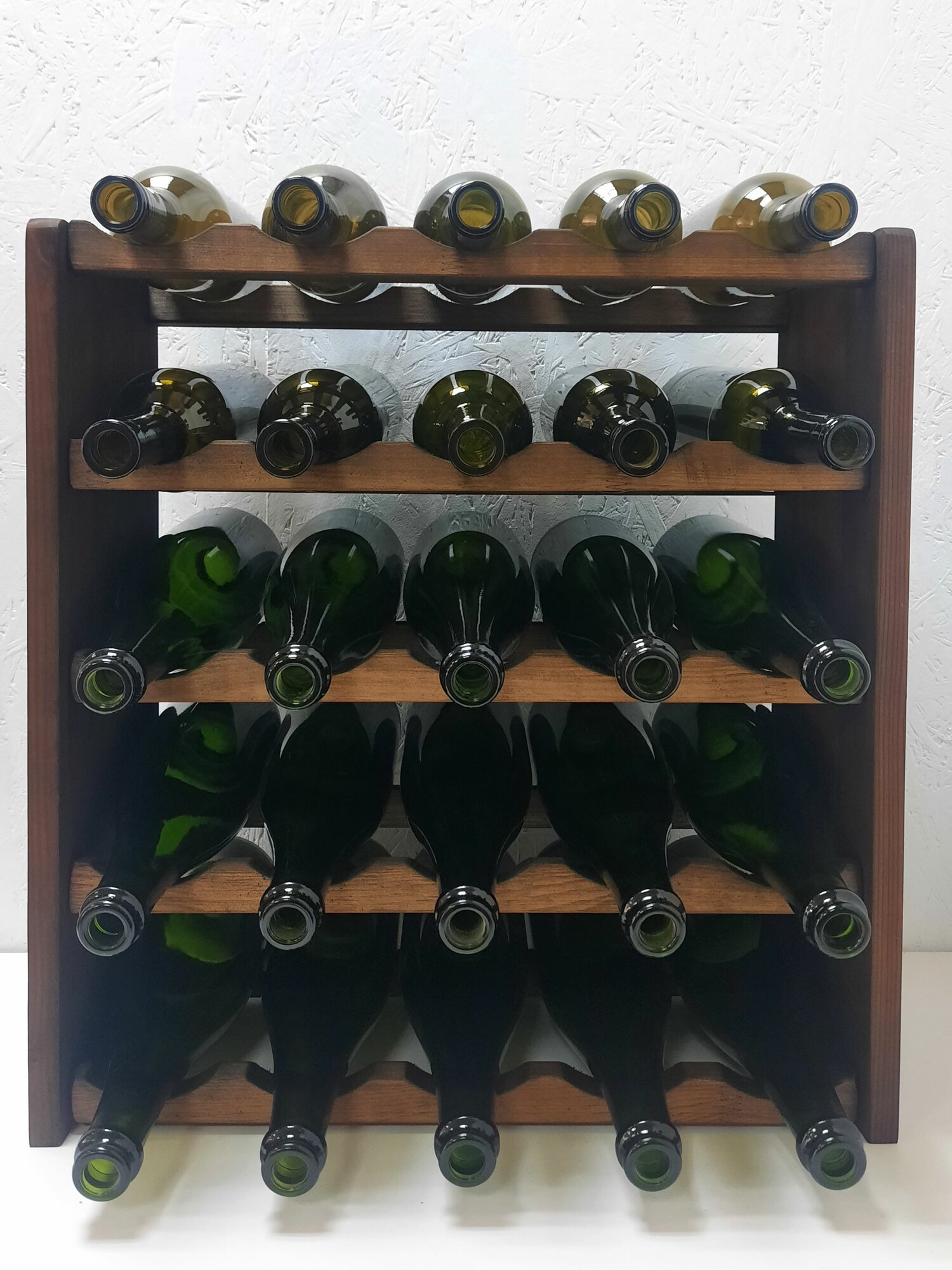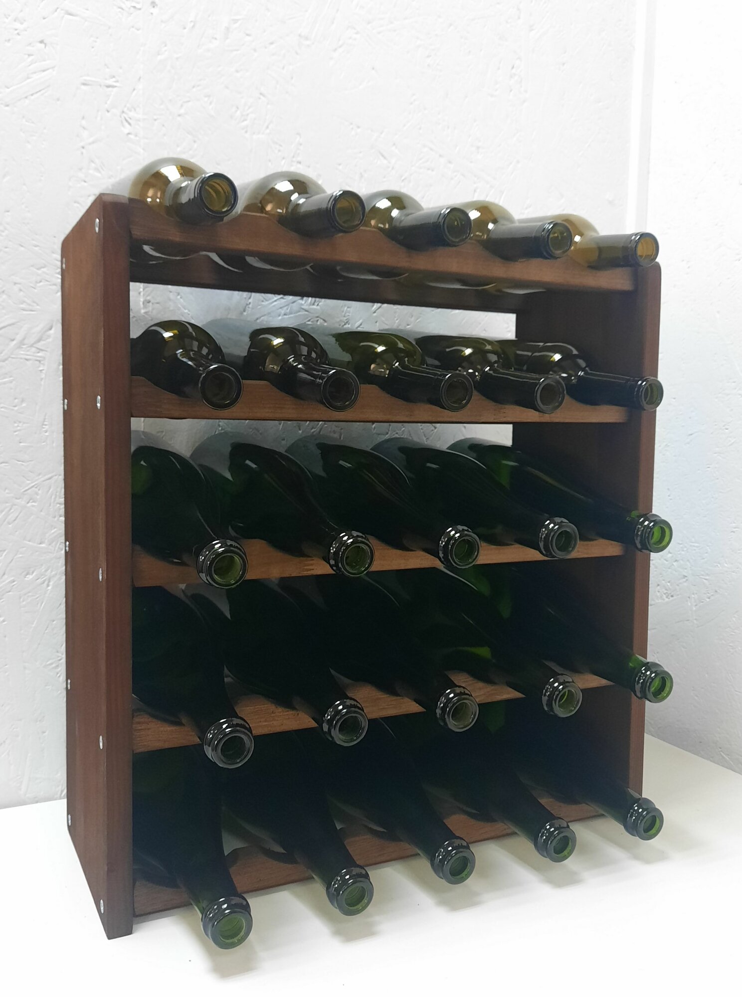 Стеллаж для вина на 25 бутылок. Шампанское помещается при чередовании с вином. Собственная ячейка для каждой бутылки - надежное хранение вашей коллекции! Винный стеллаж можно поставить вплотную к стене.