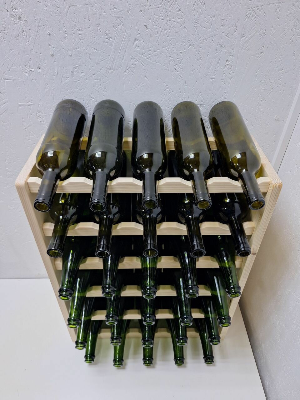 Стеллаж для вина на 30 бутылок. Шампанское помещается при чередовании с вином. Собственная ячейка для каждой бутылки - надежное хранение вашей коллекции! Винный стеллаж можно поставить вплотную к стене.