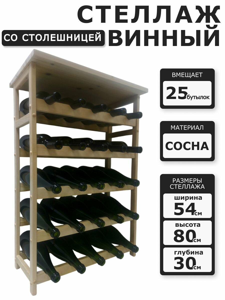 Винный стеллаж из дерева со столешницей для 25 бутылок. 5 ярусов по 5 в цвете дерева: сравнение цен, характеристики, фото, актуальное наличие и цены.