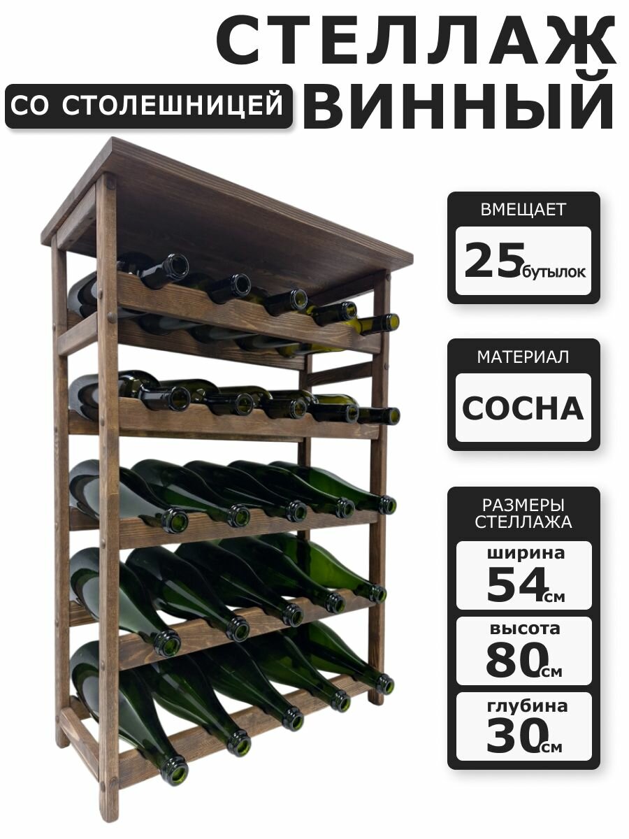 Винный стеллаж из дерева со столешницей для 25 бутылок. 5 ярусов по 5 ячеек. Грецкий орех: сравнение цен, характеристики, фото, актуальное наличие и цены.