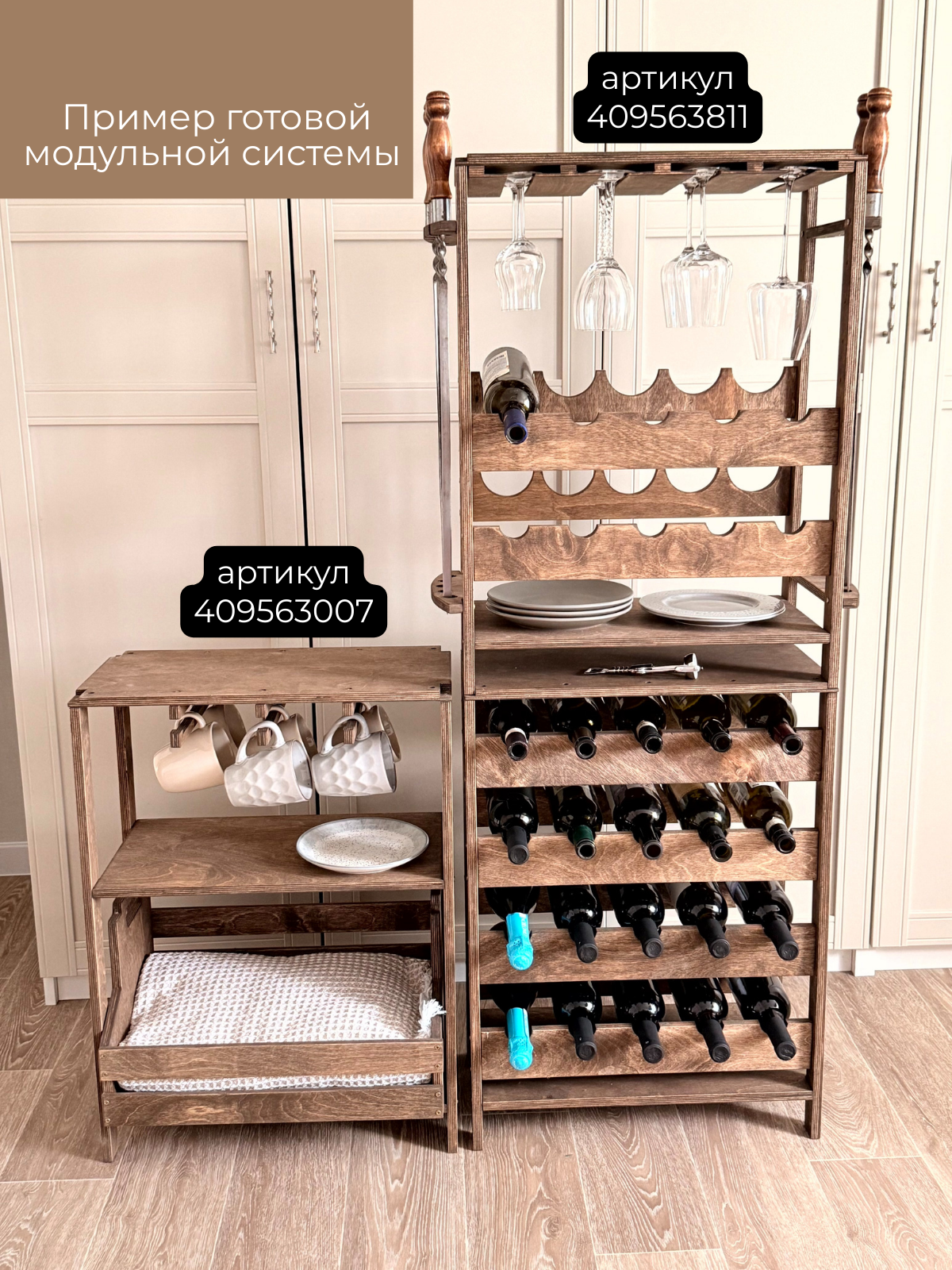 Винный стеллаж-полка для 20 бутылок напольный модульный выполнен из качественной сосны, что обеспечивает его долговечность и надежность. Собственная ячейка для каждой бутылки гарантирует надежное хранение вашей коллекции.