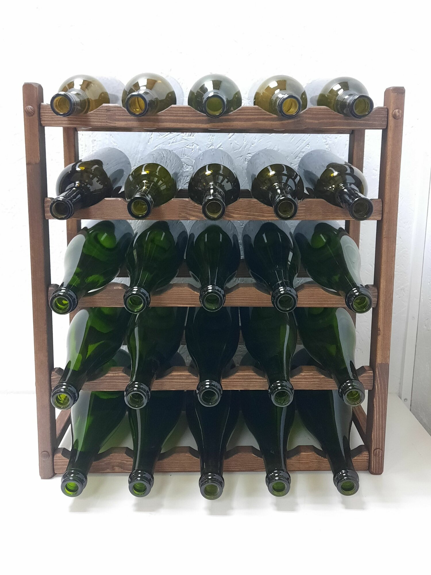 Размеры изделия без бутылок: Высота 54 см, глубина 20 см, ширина 49 см. Высота с верхней бутылкой 58-60 см, глубина стеллажа с винной бутылкой 30-32 см, в зависимости от бутылки.