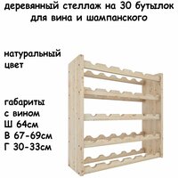 Стеллаж для вина и шампанского на 30 бутылок из дерева, размеры с бутылками Ш63.5хВ68хГ30, цвет дерева: сравнение цен, характеристики, фото, актуальное наличие и цены.