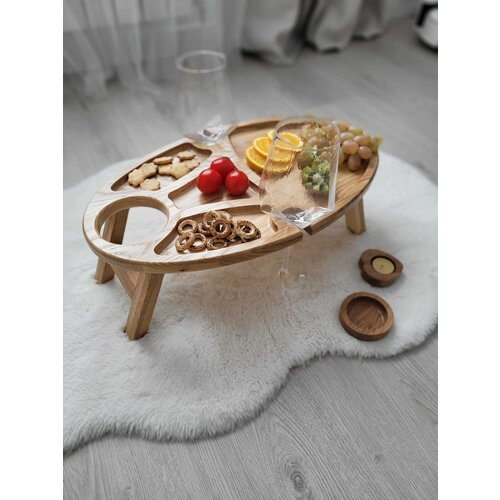 Винный столик из дерева - это и как деревянный поднос - менажница и как украшение для интерьера. Оригинальный подарок девушке или подруге на романтический вечер, день рождения, 14 февраля (День всех влюбленных) или 8 марта! Столик для вина можно использовать для завтрака в постель, на пикнике и для сервировки стола. Поднос складной для вина отлично подойдет для закусок и сыра. Сервировочный столик под вино и сыр качественный, выполнен из натурального дерева - дуб. Деревянный складной столик поднос - практичный, стильный и красивый. В место под бутылку входит вино и шампанское. Наш винный столик - это по сути менажница деревянная на ножках. Подарки из дерева в моде - сделайте в конце концов лучший подарок девушке!